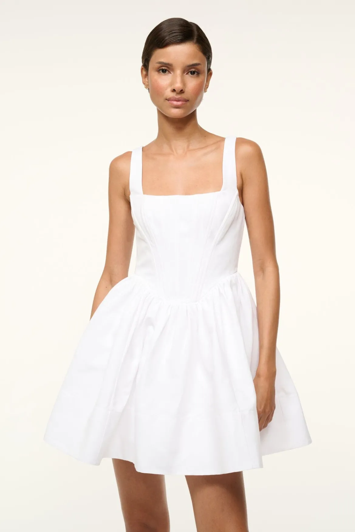 A sleeveless babydoll mini dress, this style features a tulle skirt and corset bodice fashioned after our signature Alice Top.