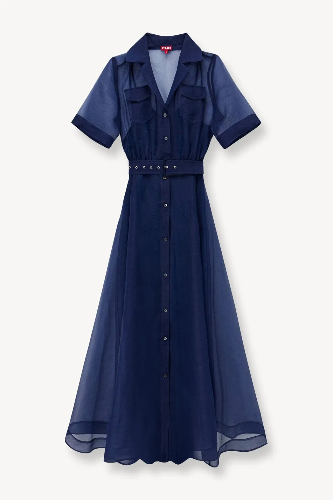 The Millie is a full length dress made out of organza. This dress features a slip, two front pockets, a button down front and matching belt.