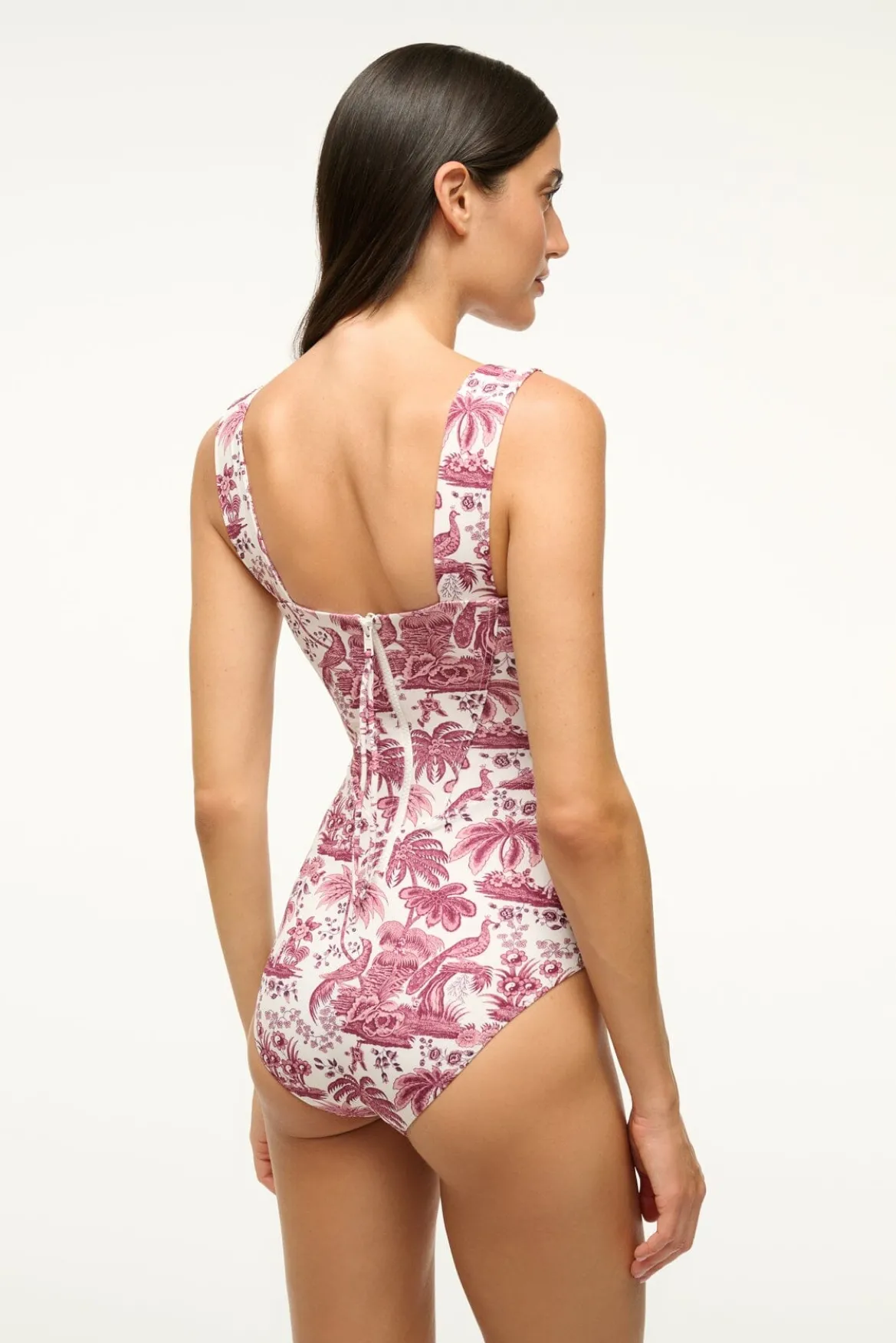 The Adelaide is a new one piece swimsuit with corset-style boning throughout the chest and torso. This style features zipper at the back and supportive shoulder straps.