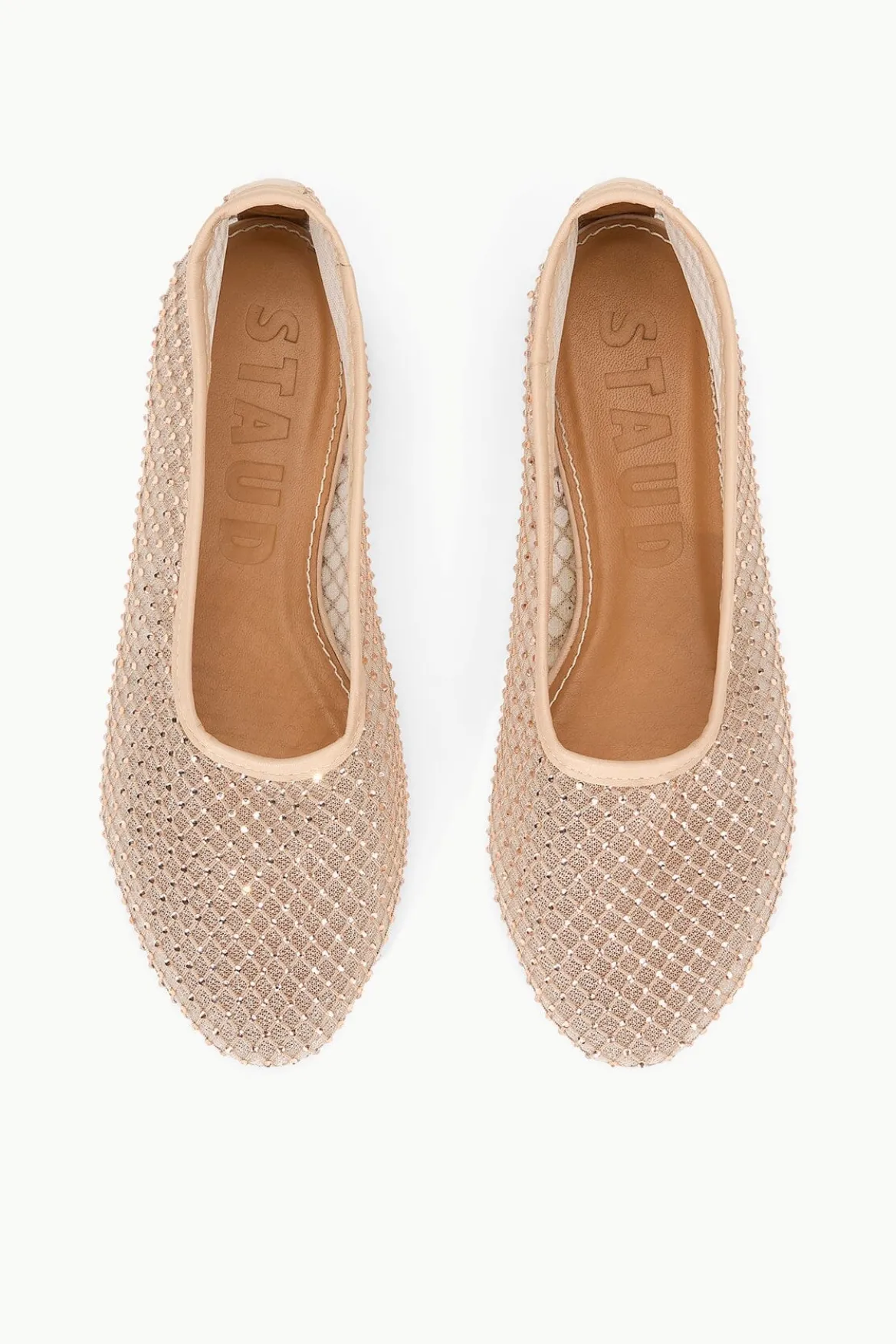 Our Alba Ballet Flat has been updated for the Holiday season in a delicate beaded mesh. They feature a rounded toe and a soft nappa leather sole.