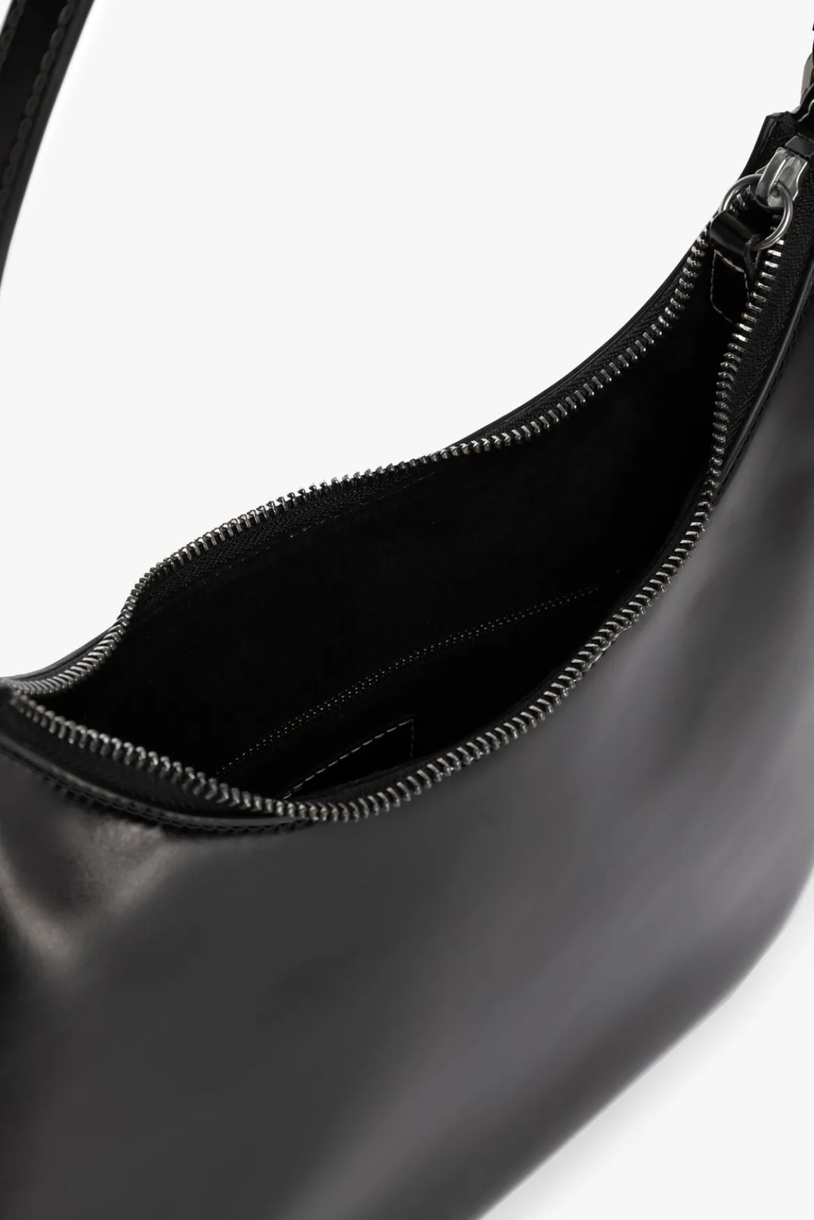 A classic structured shoulder bag, the Alec Bag features minimal silver hardware details and suede lining. This style is made out of a polished leather.