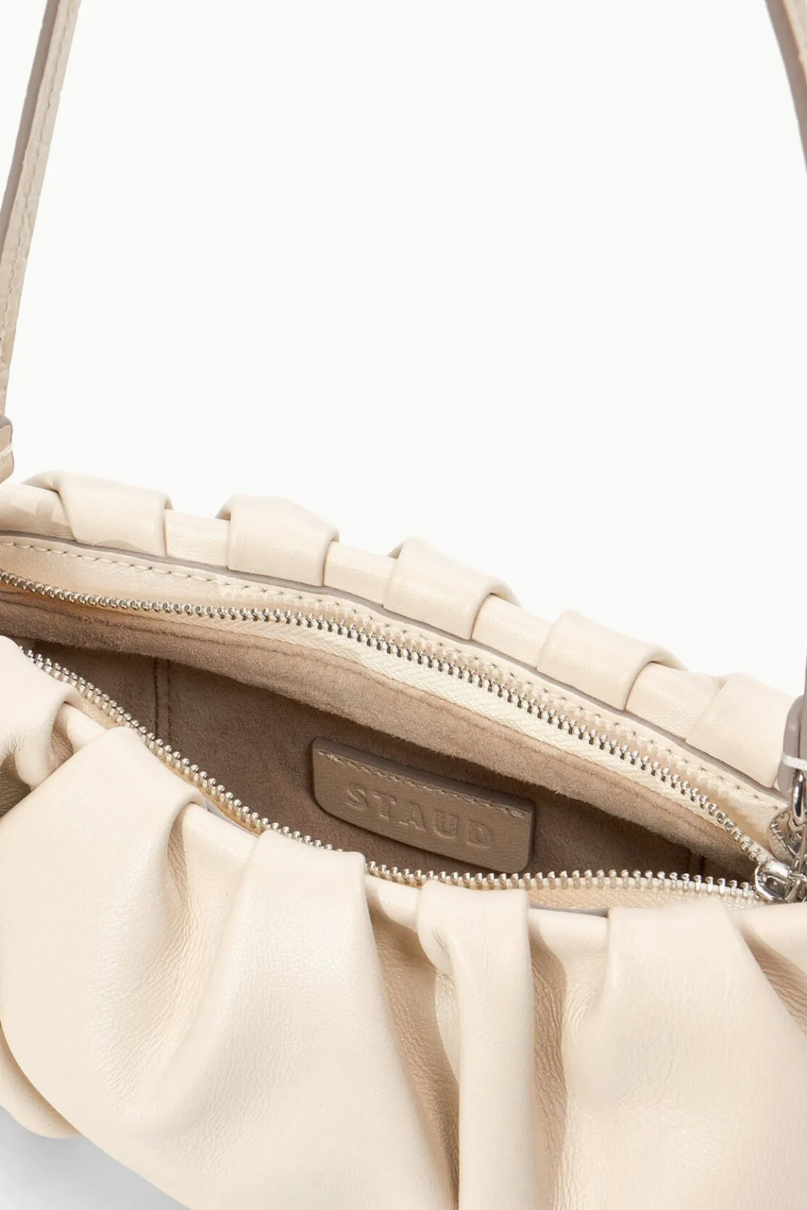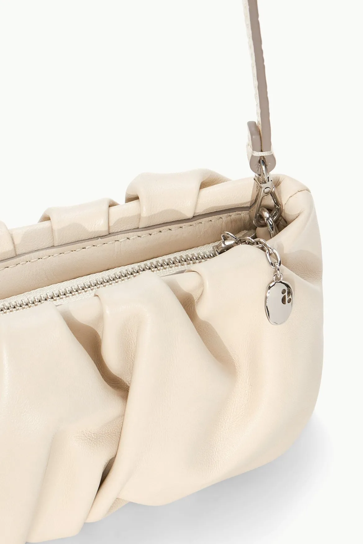 The Bean Bag is a small convertible clutch in soft leather. This bag features a zipper closure, suede lining and removable shoulder strap.
