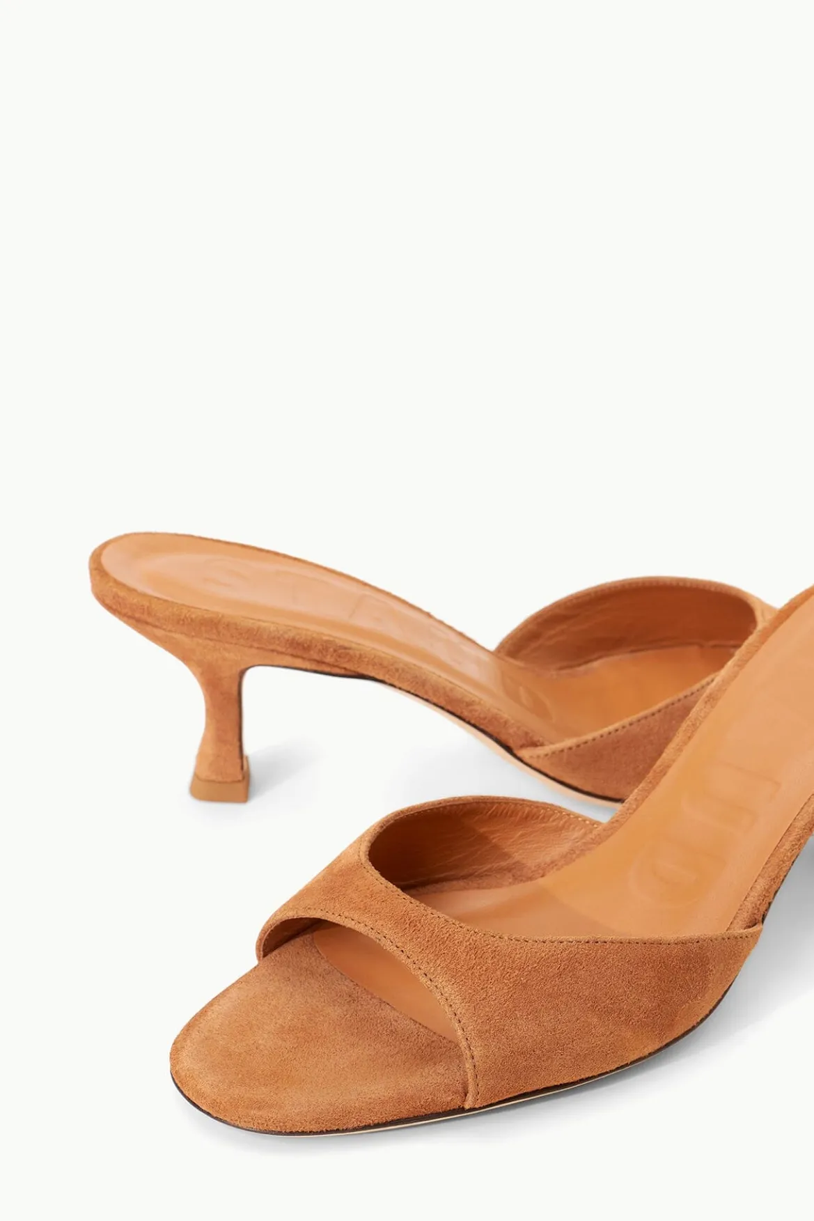 Anopen-toe mule crafted in soft suede, the Brigitte is an essential kitten heel for versatile dressing.