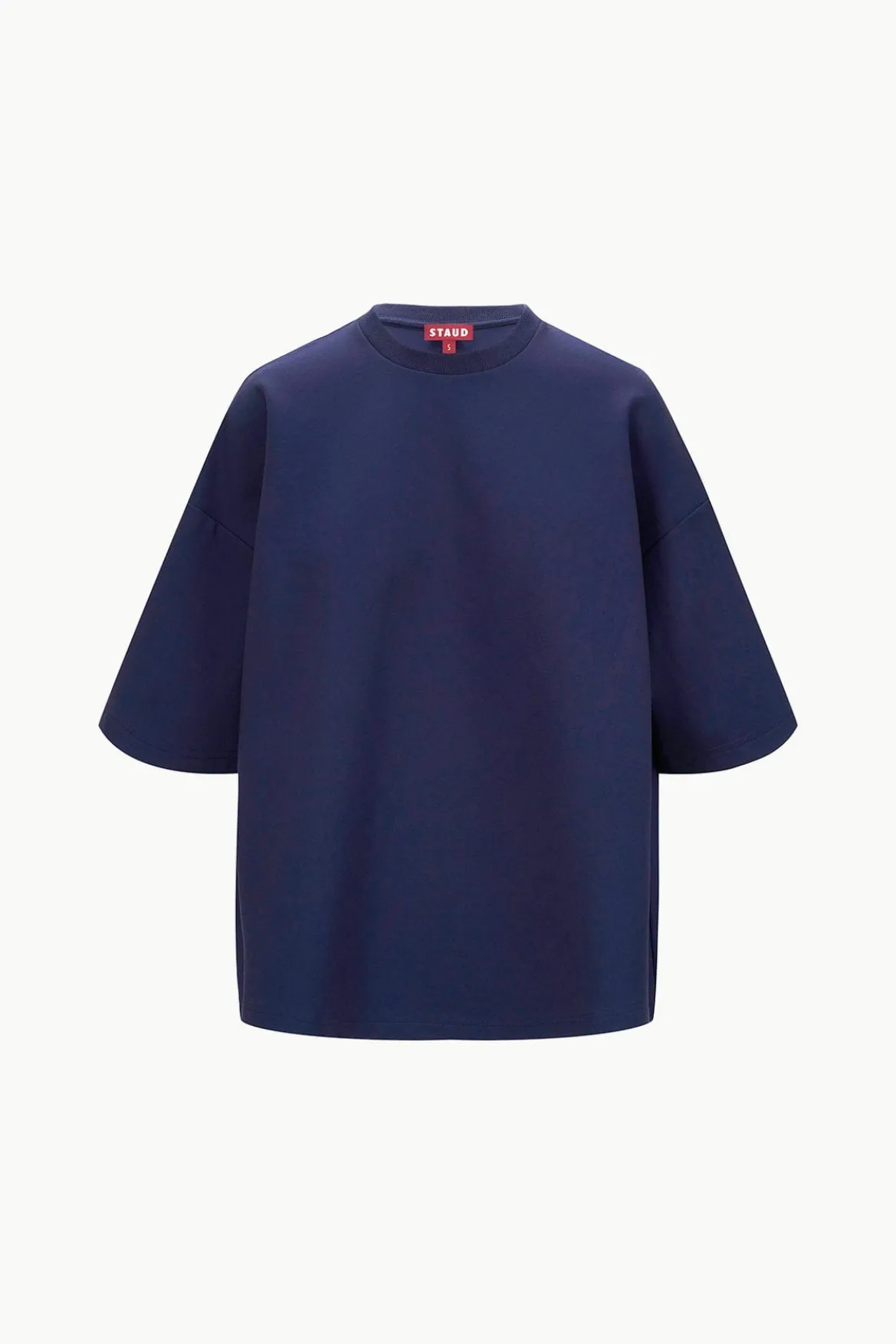 An oversized crewneck shirt in our ponte fabric with a rib neck trim. The Capsule Top is a perfect travel day essential when paired with our Knack Pant.