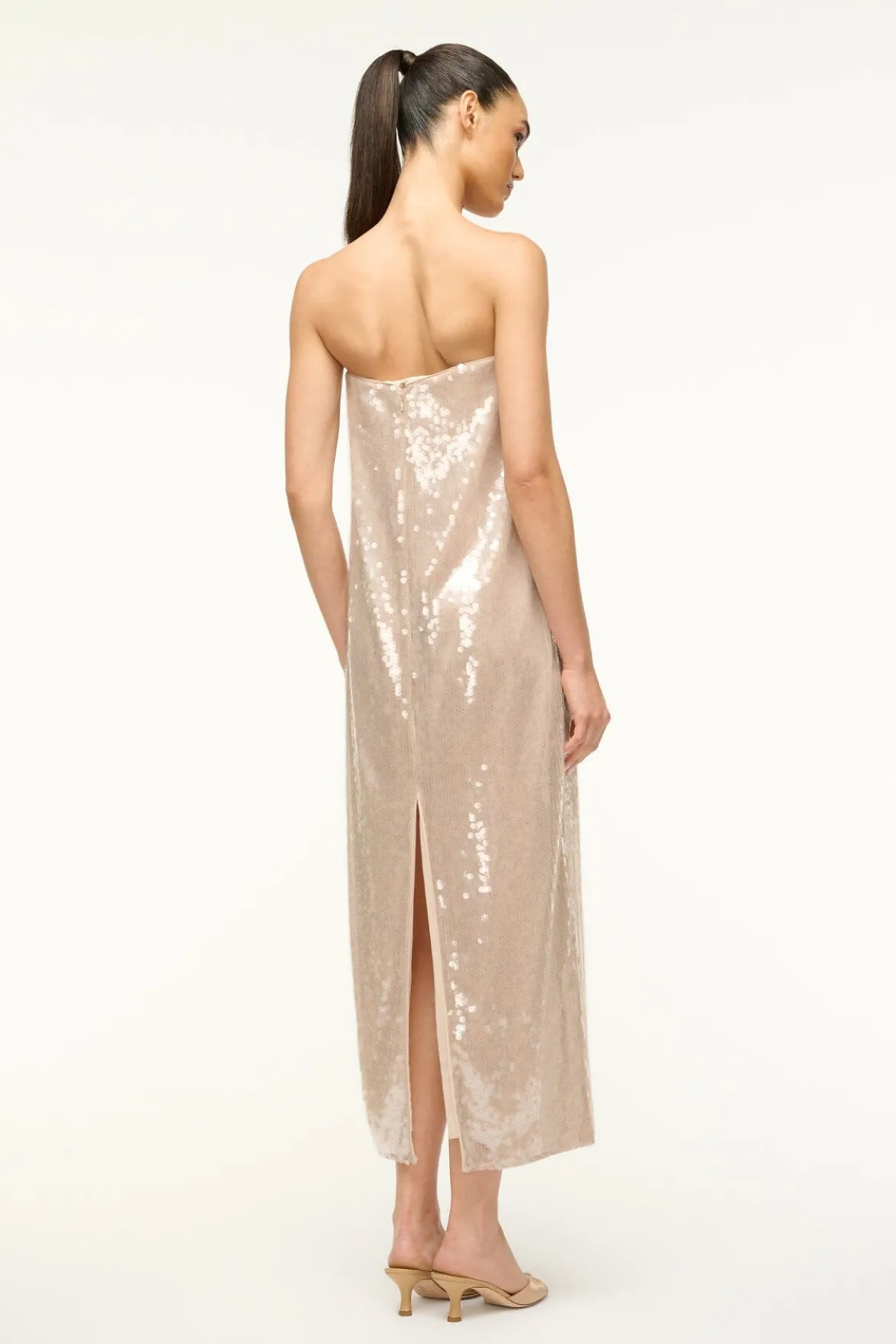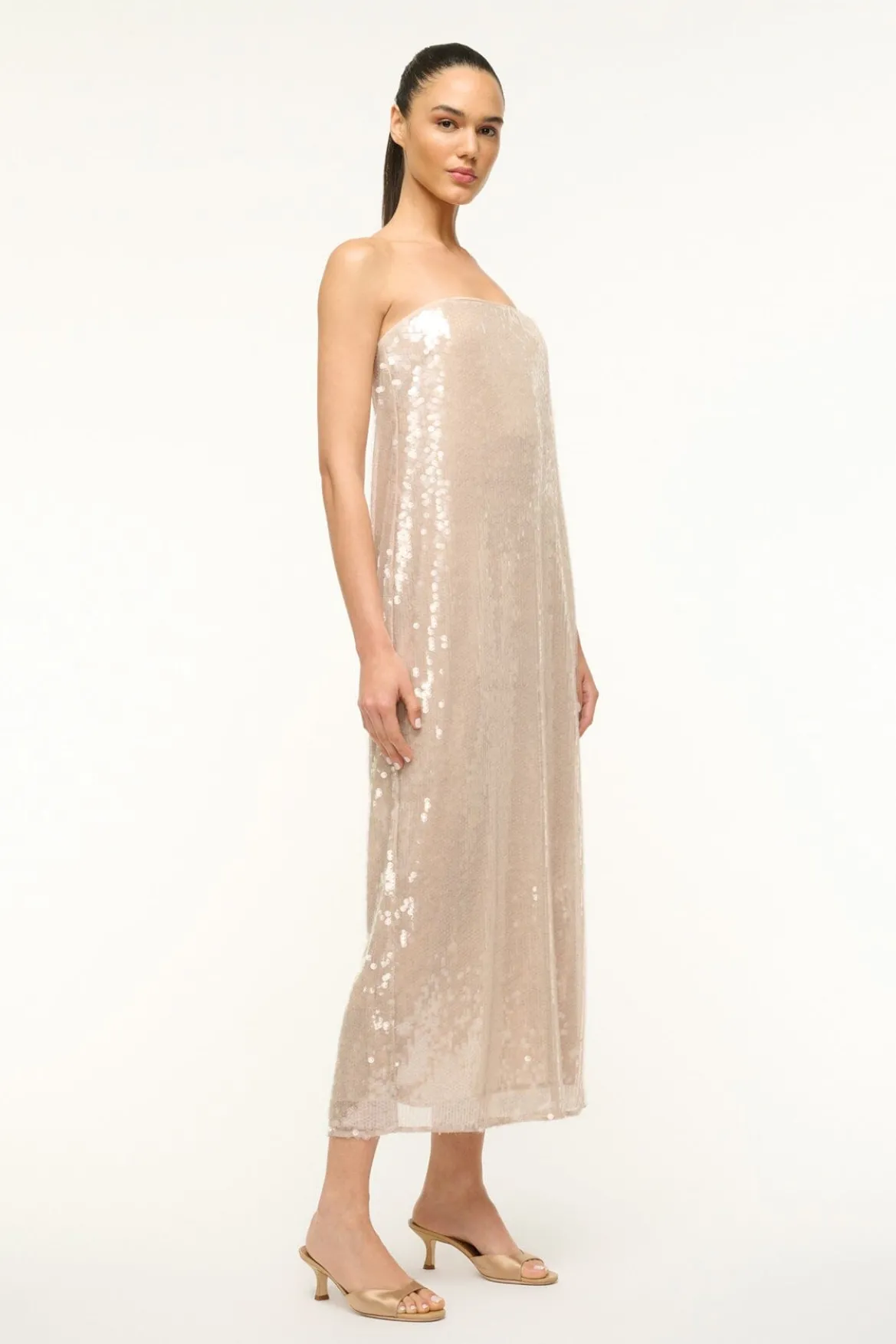 Our best-selling Casey Dress crafted in shiny sequins features a relaxed silhouette throughout the body, a back slit, and a hidden zipper.