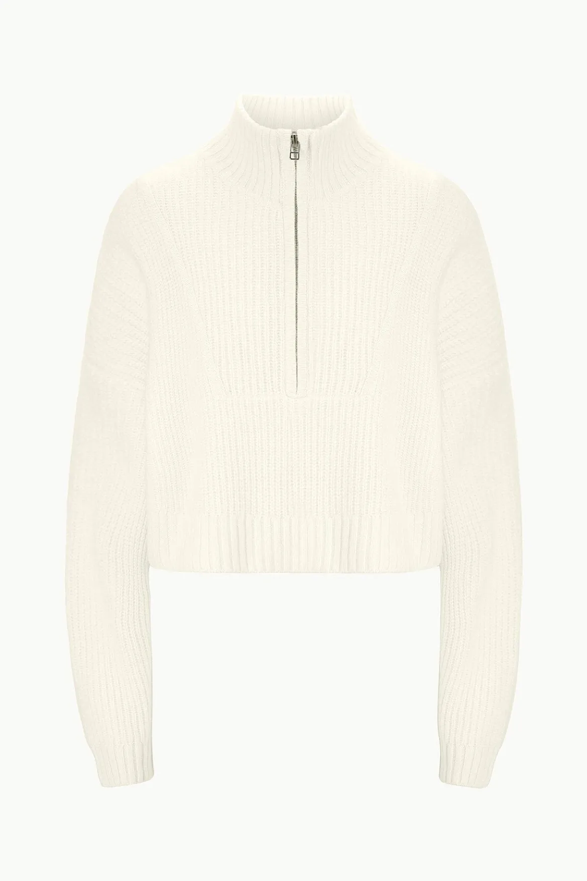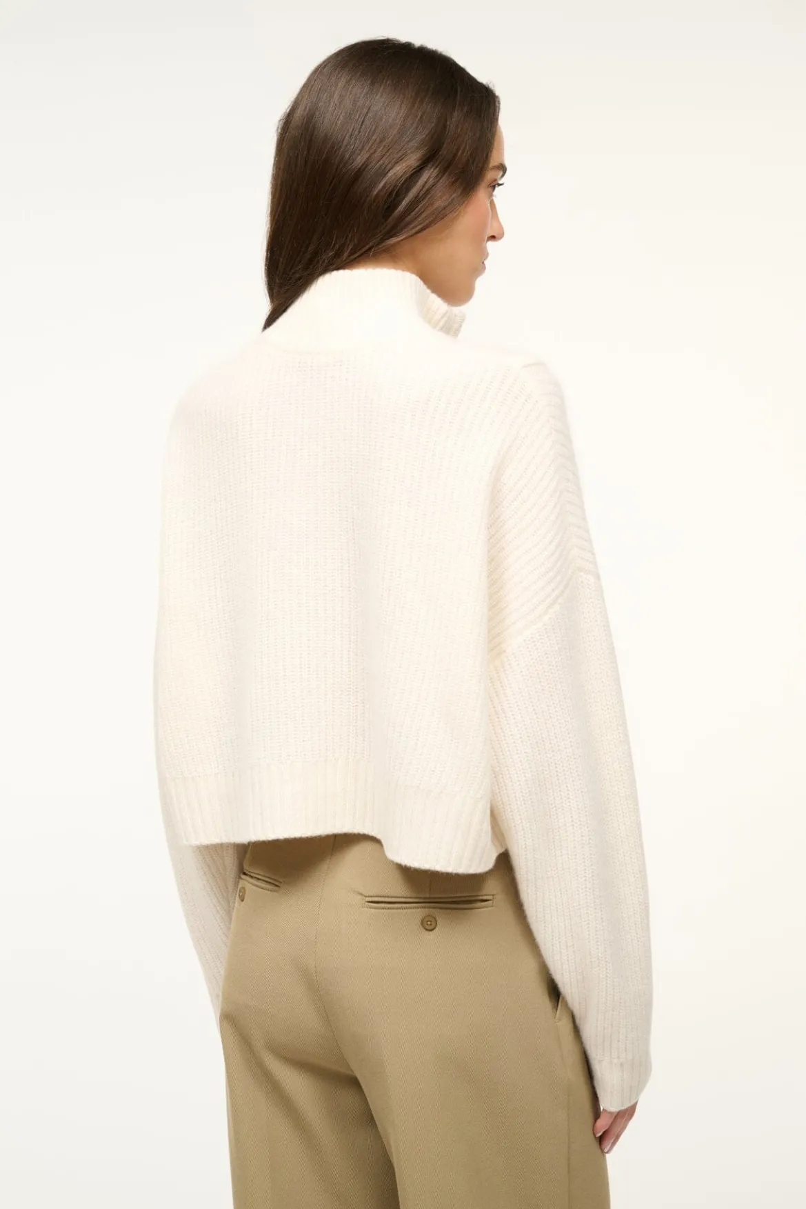 STAUD CASHMERE CROPPED HAMPTON SWEATER IVORY
