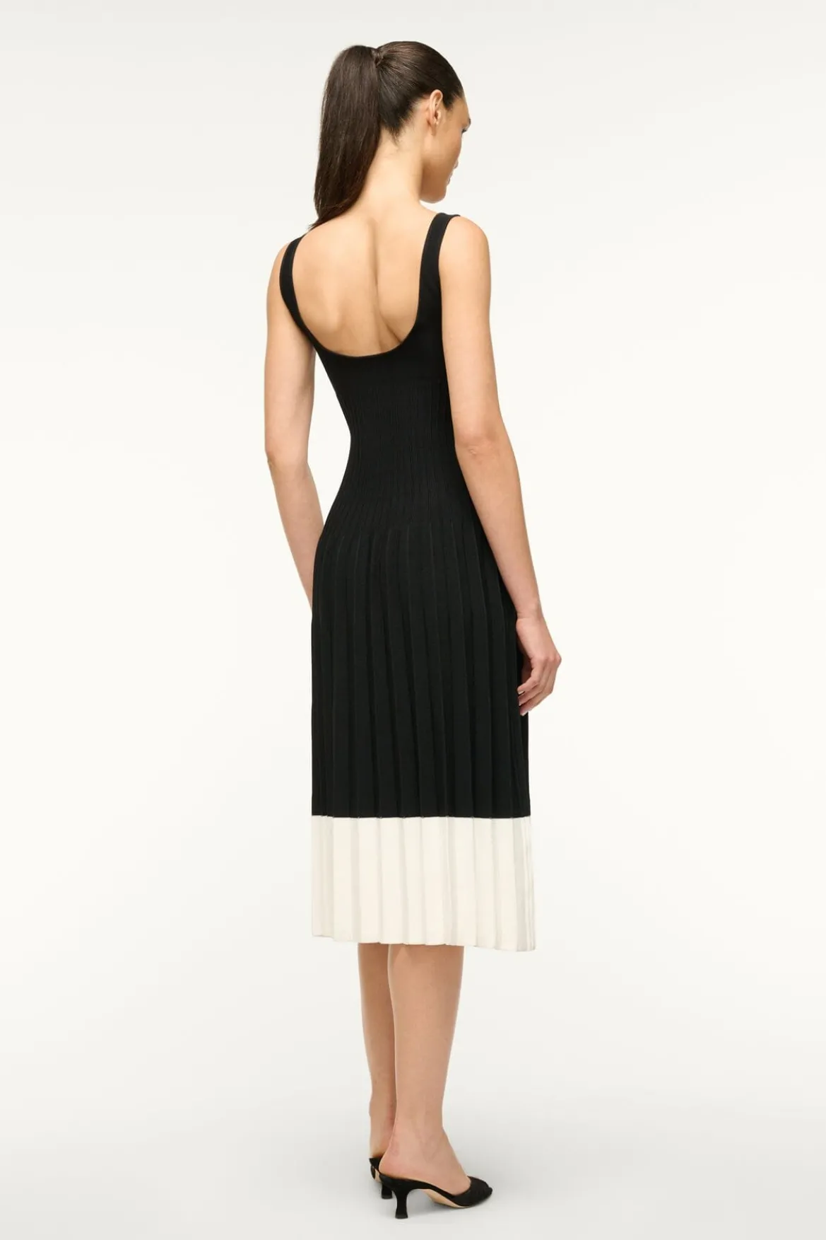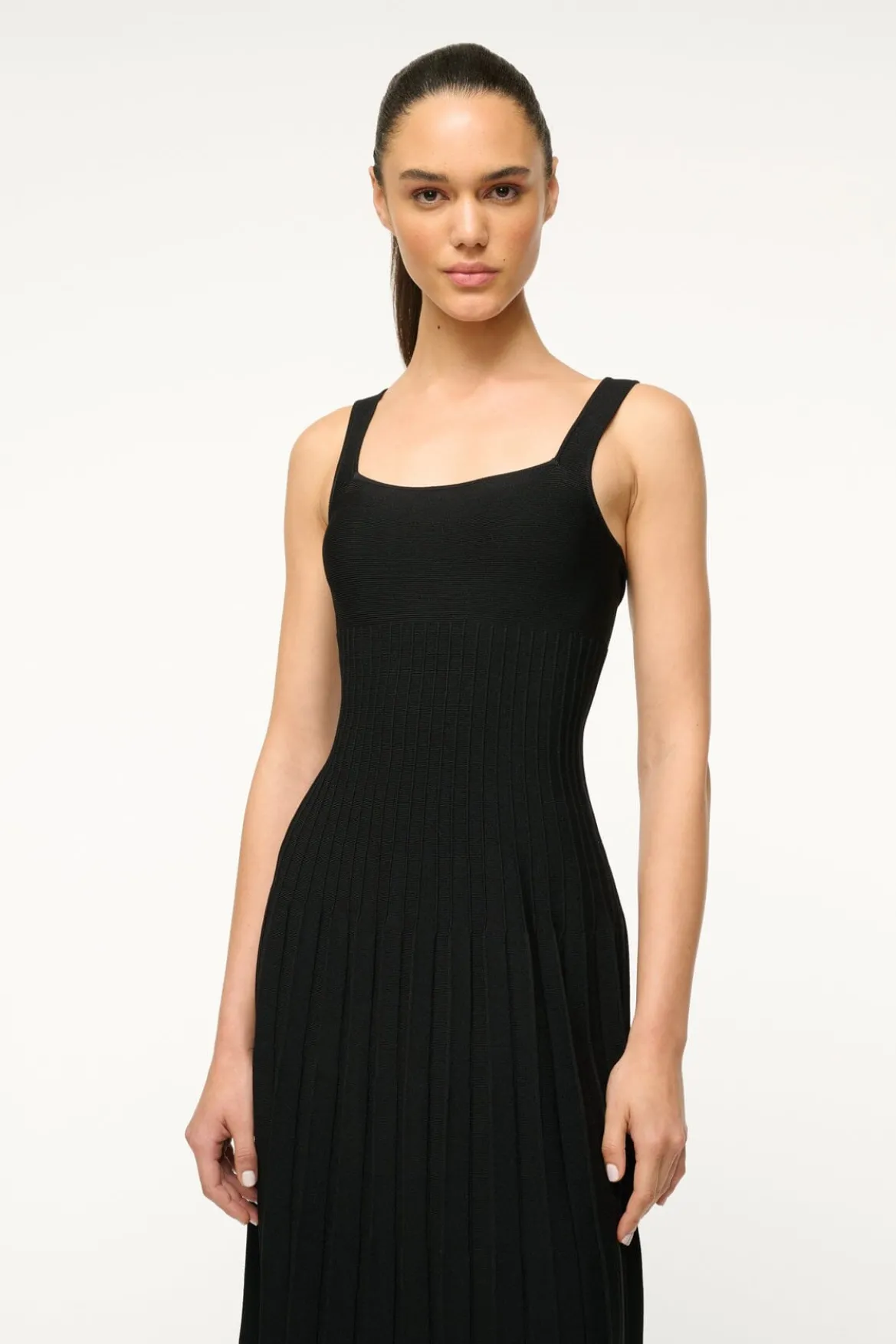 The Ellison Dress features a square neckline, bra-friendly straps, and ottoman stitch detailing at the waist for the perfect flattering fit.
