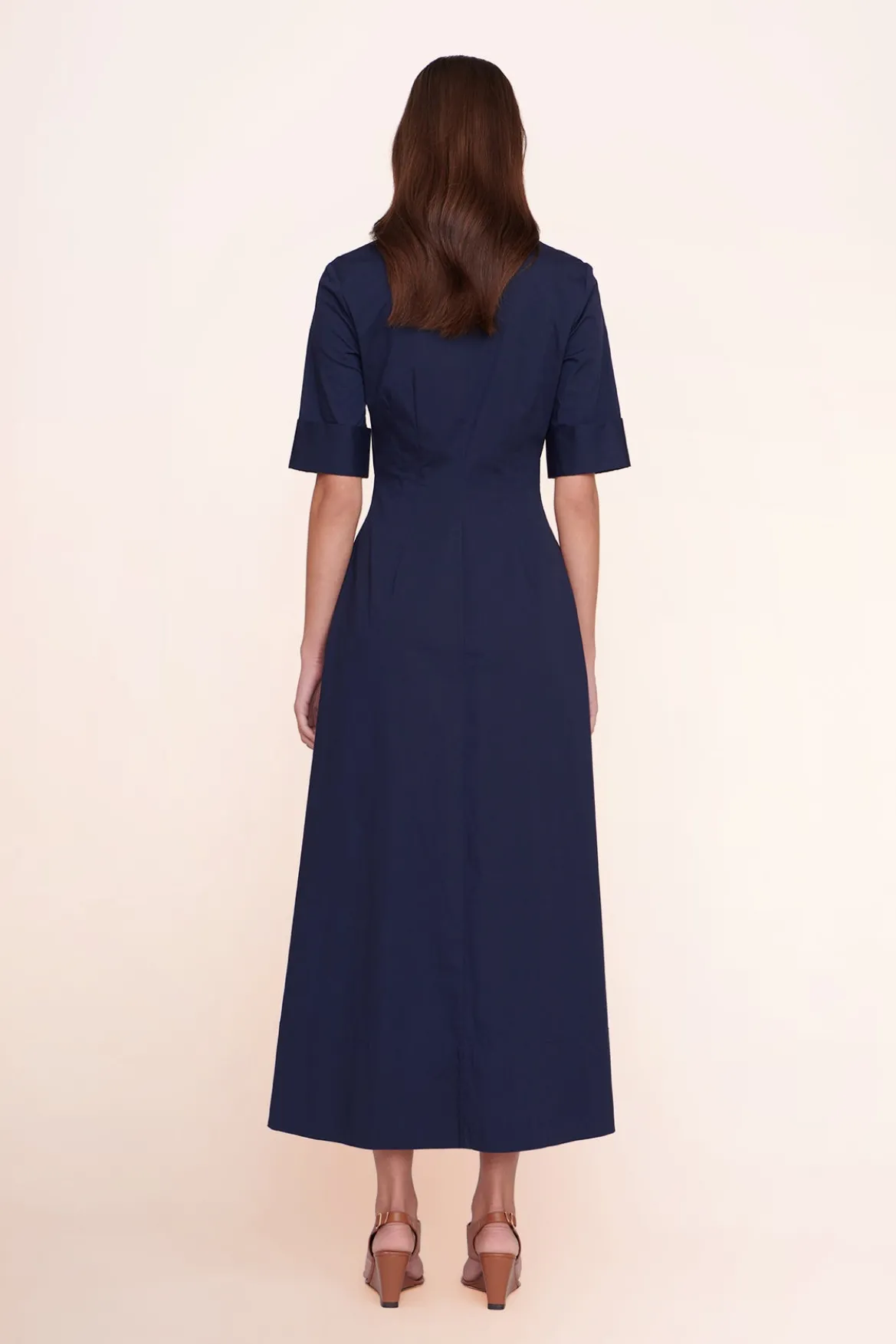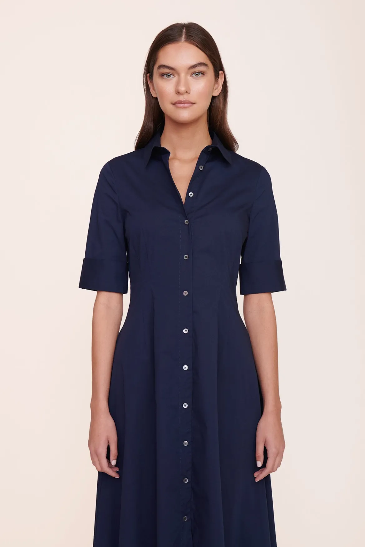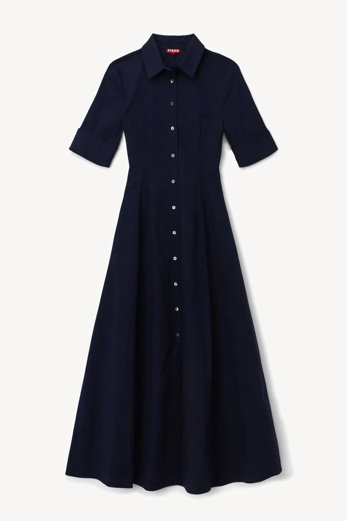 A maxi shirt dress made out of stretchy cotton poplin, the Joan Dress is a modern yet polished take on a classic.