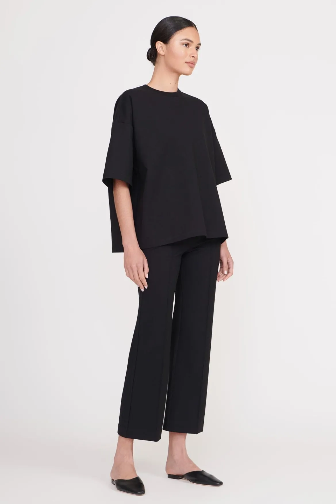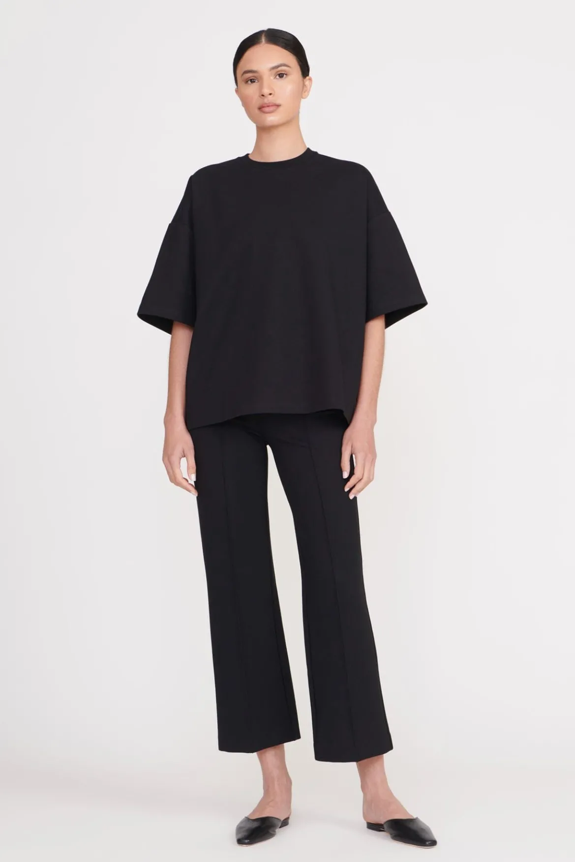 An ankle length pant made out of a stretchy ponte knit fabric with princess seams at the front and a center back zipper. Pair with the Capsule Top for a matching set.