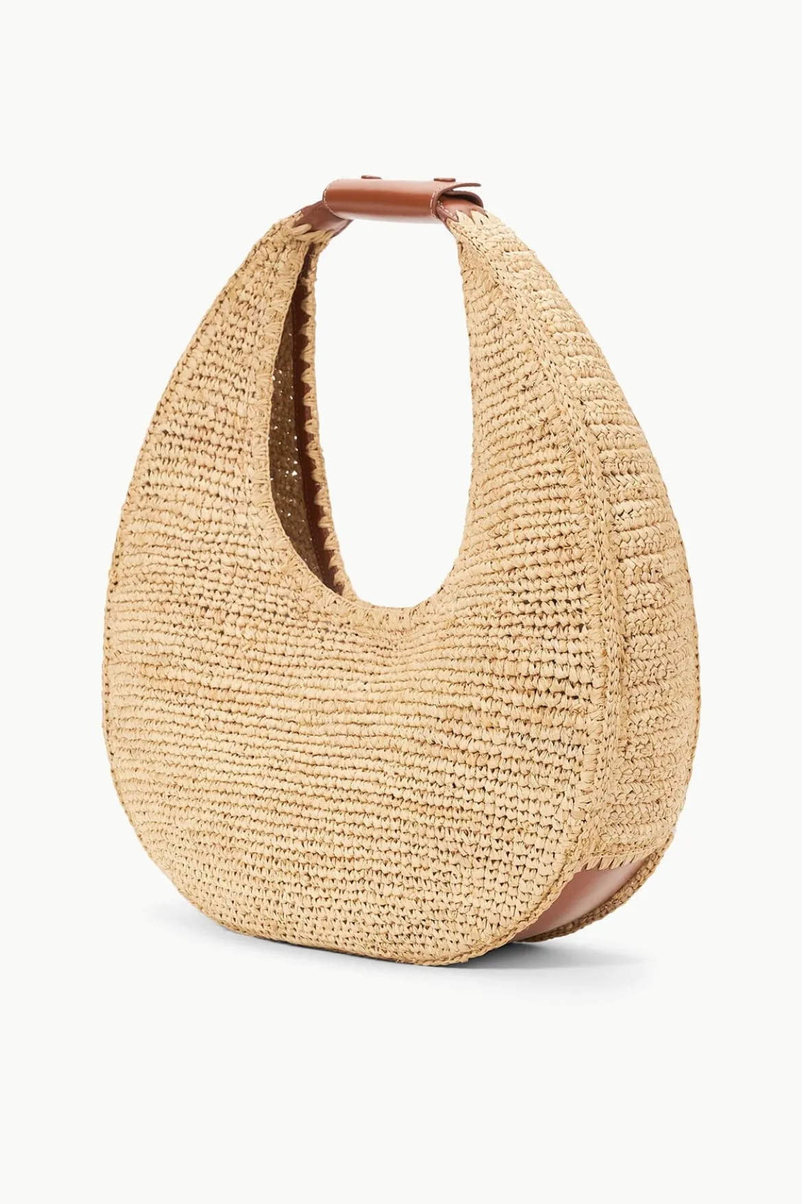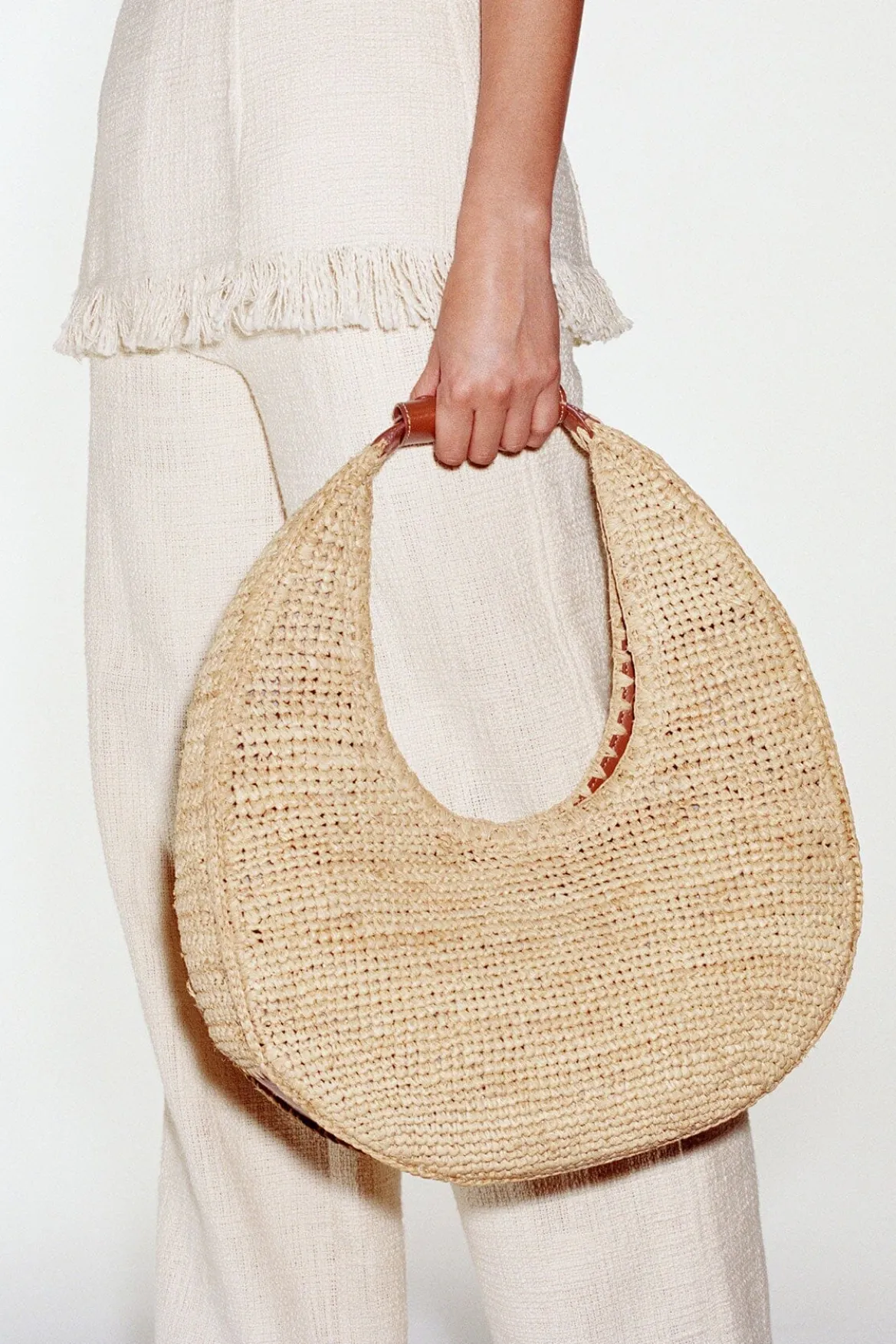 An oversized addition to our Moon family, the Large Raffia Moon is the perfectvacation tote. This style is made from hand-woven natural raffia and is fully unlined, offering a relaxed silhouette.