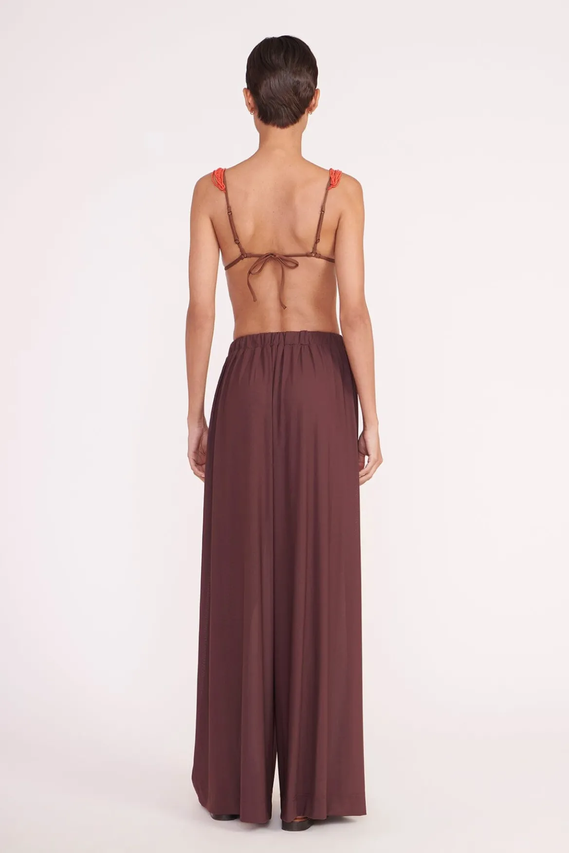 A flowy swim coverup pant, the Marza is a relaxed, pull-on, elastic waist pant made with stretch mesh that can be paired with the Miriam Top for a full look.
