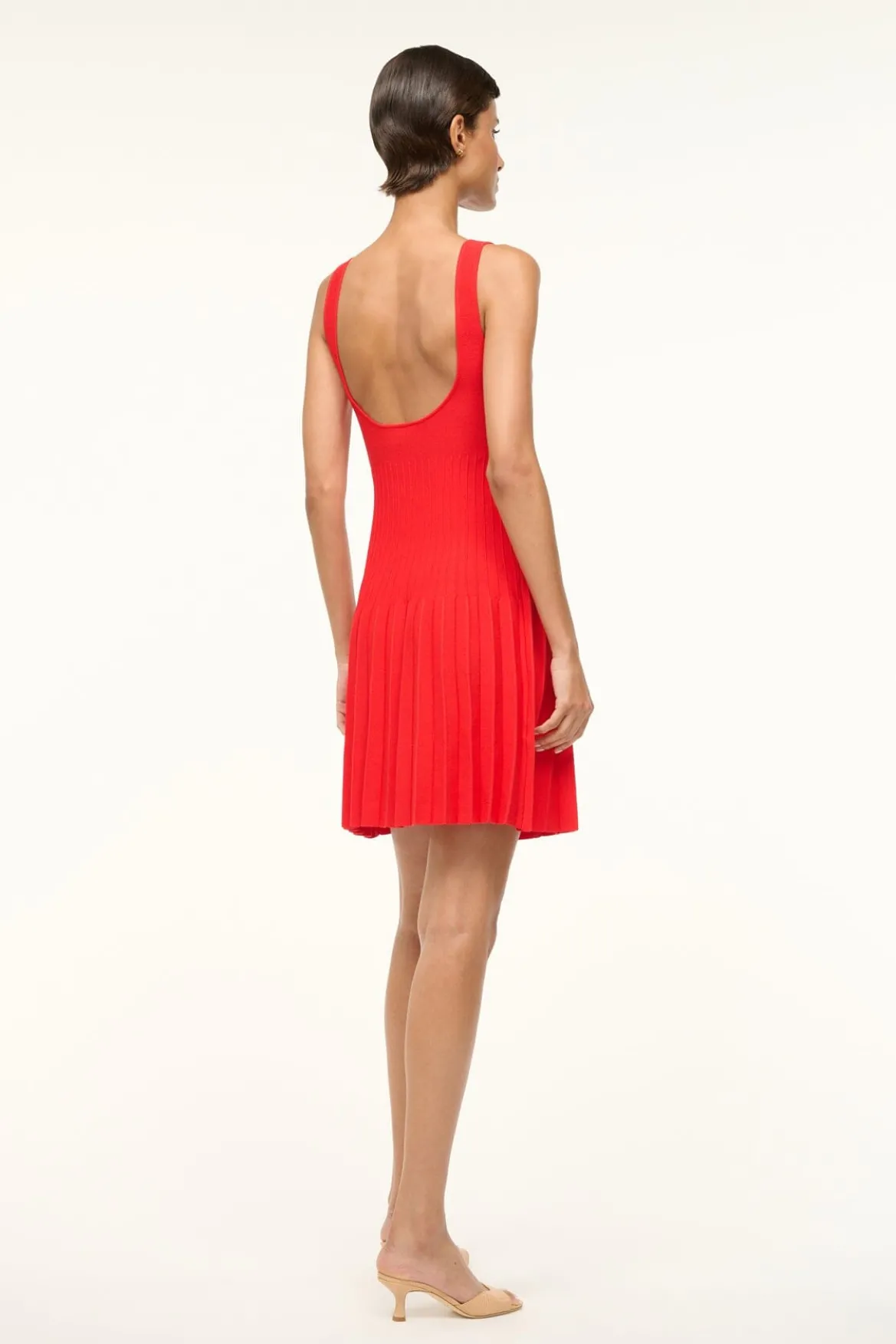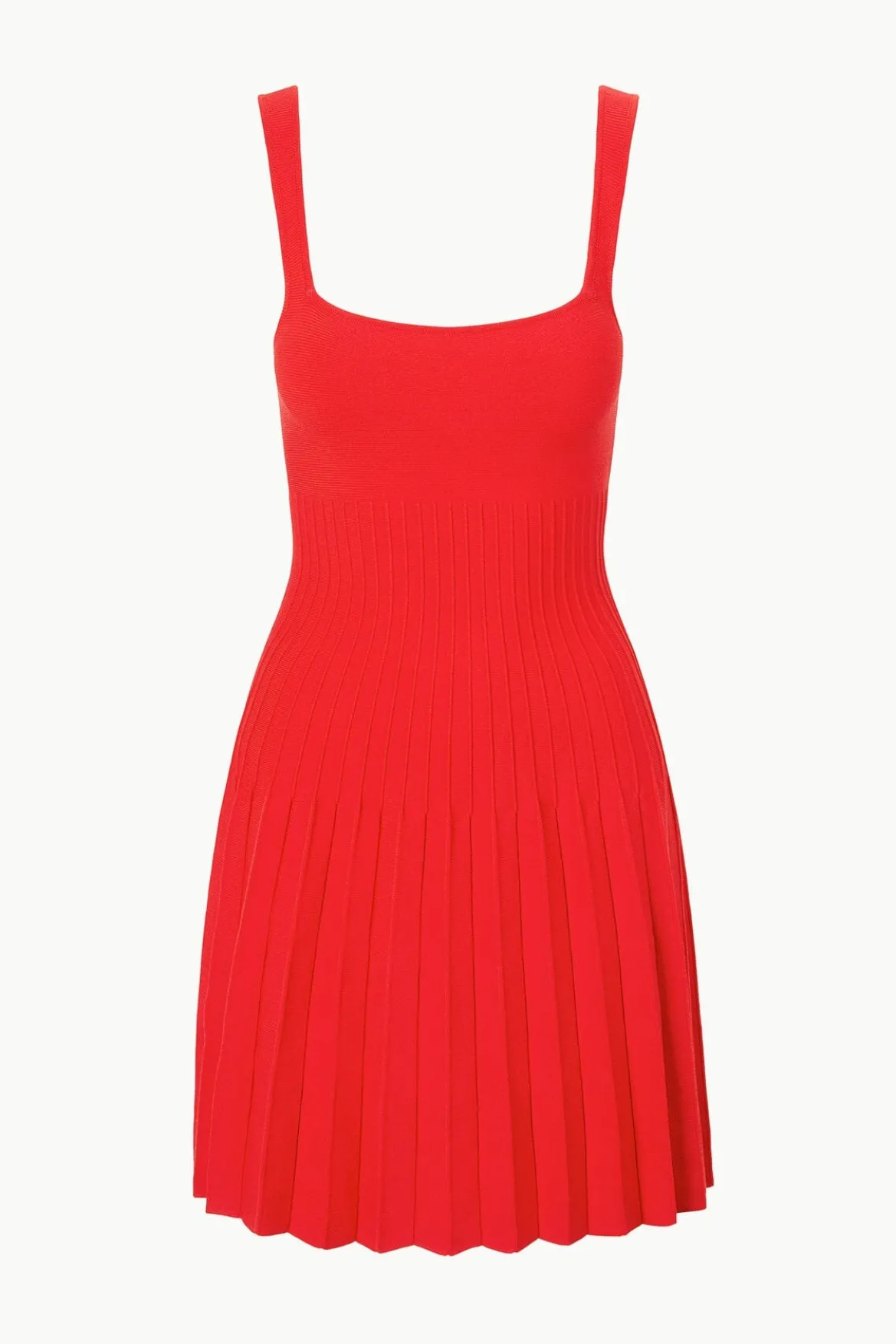 The Mini Ellison Dress is our newest compact knit dress featuring a square neckline, bra-friendly straps, and ottoman stitch detailing at the waist for the perfect flattering fit.