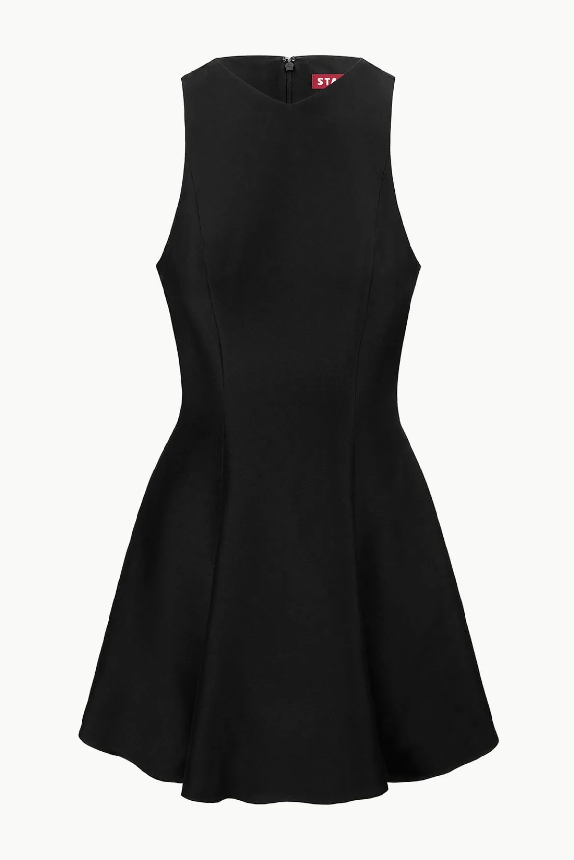 The Mini Heike is a silk wool dress with a high v neckline, a full skirt and side pockets.