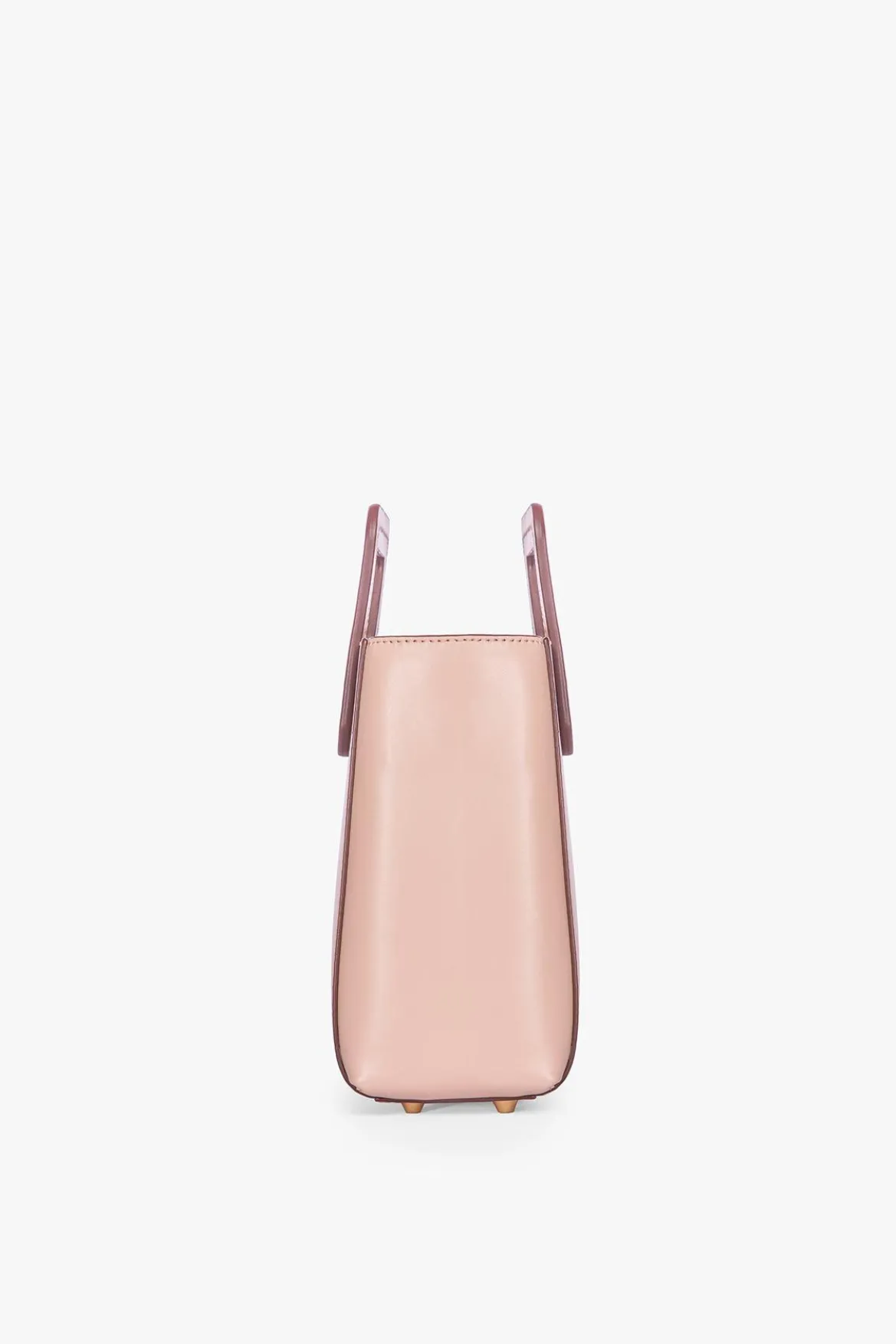 The Mini Shirley Bag in leather is a small tote that can be carried by the top handle or with the adjustable removable crossbody strap. This style features a removable inner zip pouch.