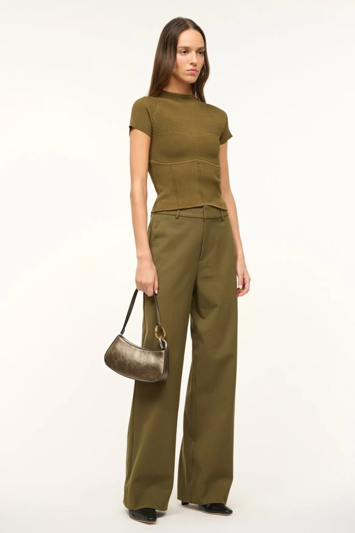 The Ollie Bag is a mini shoulder bag made out of polished leather. This style features a hardware design on the strap and a zip closure.