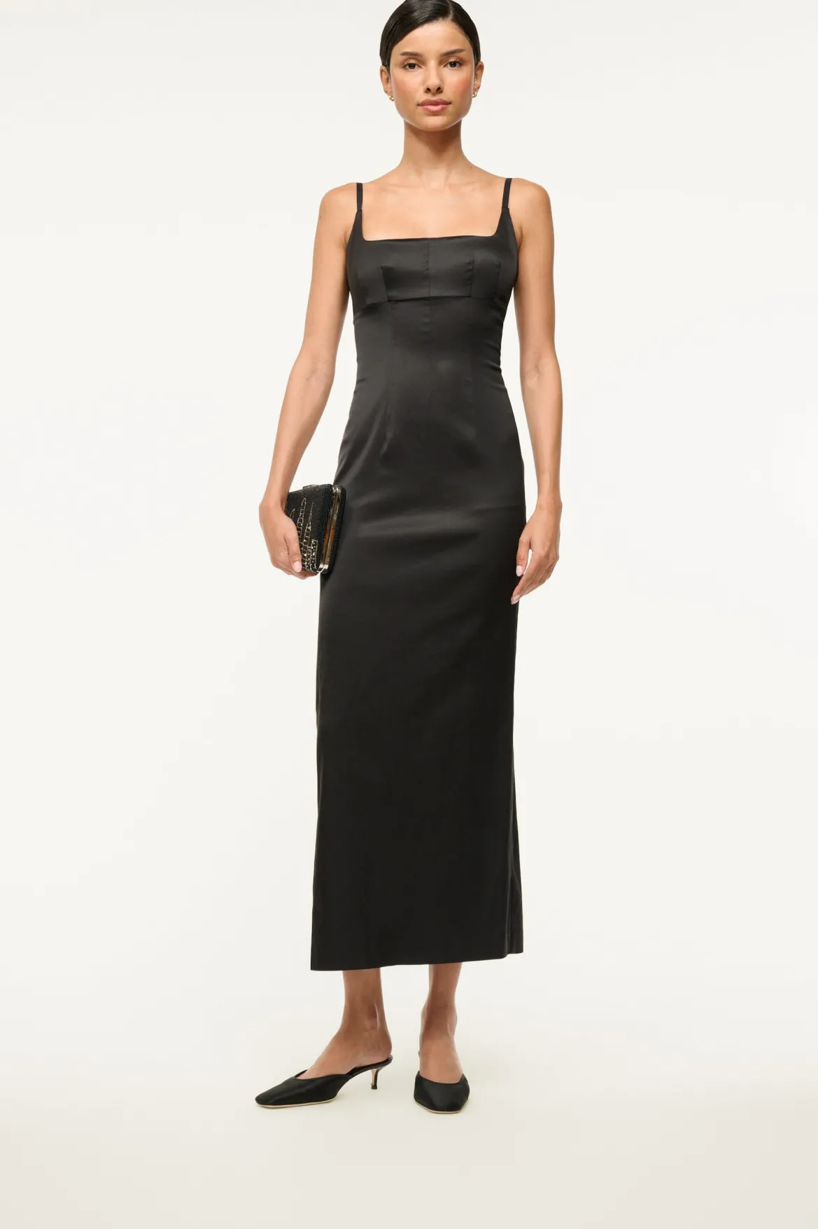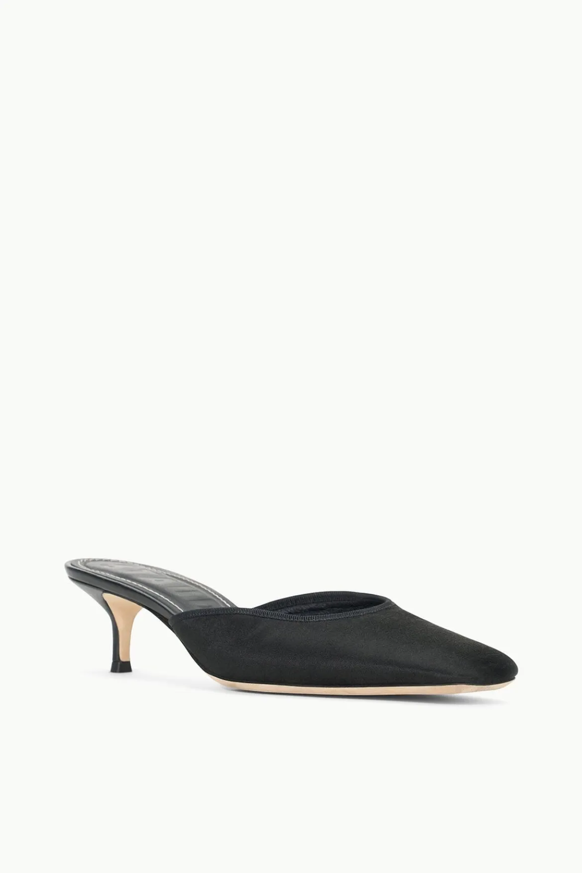 The Otto has been updated for the season with a kitten heel and a satin upper with grosgrain trim.