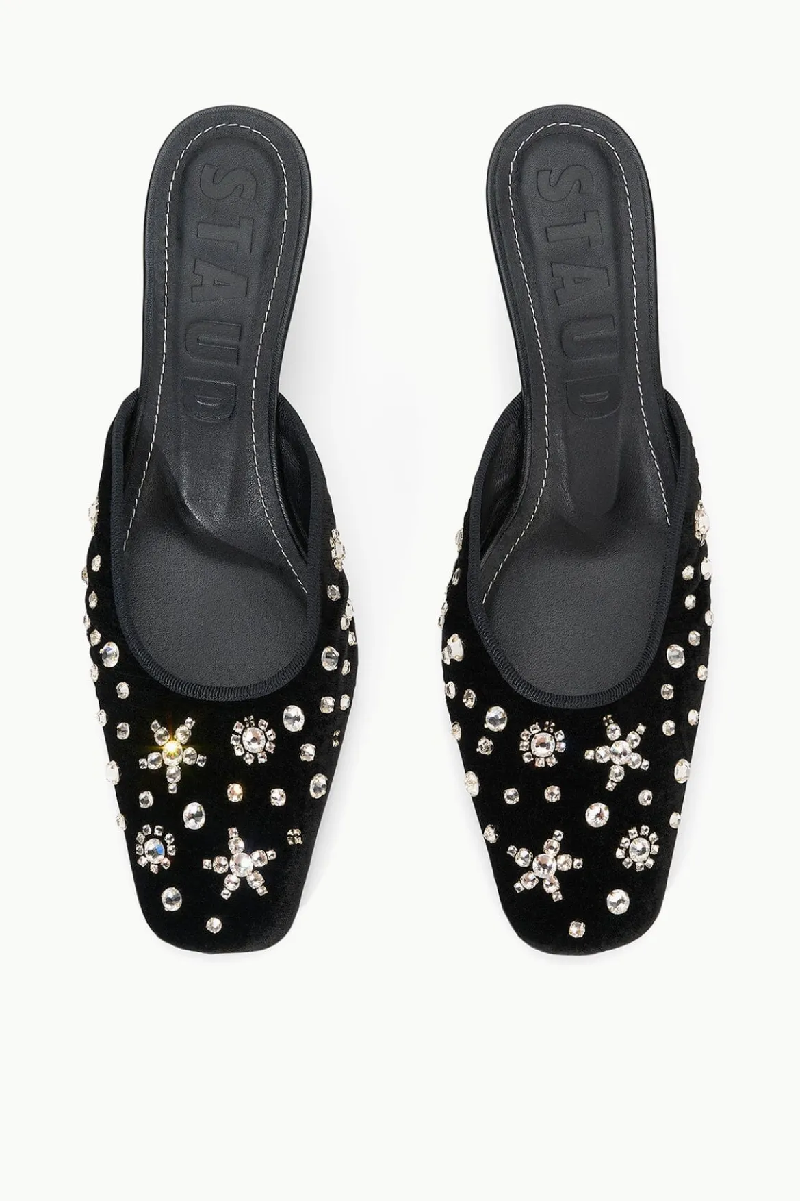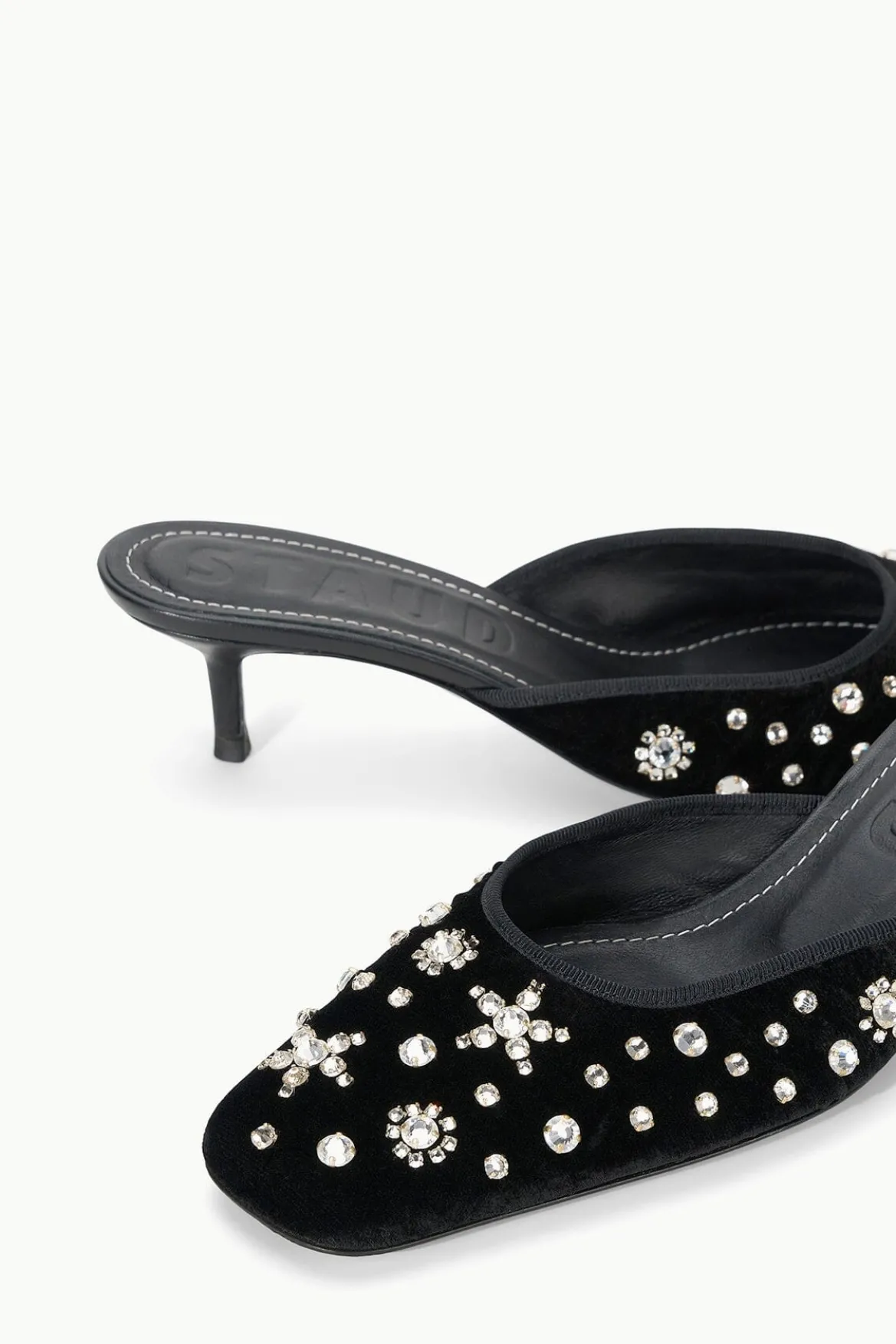 The Otto has been updated for the season with a kitten heel and beaded satin upper.