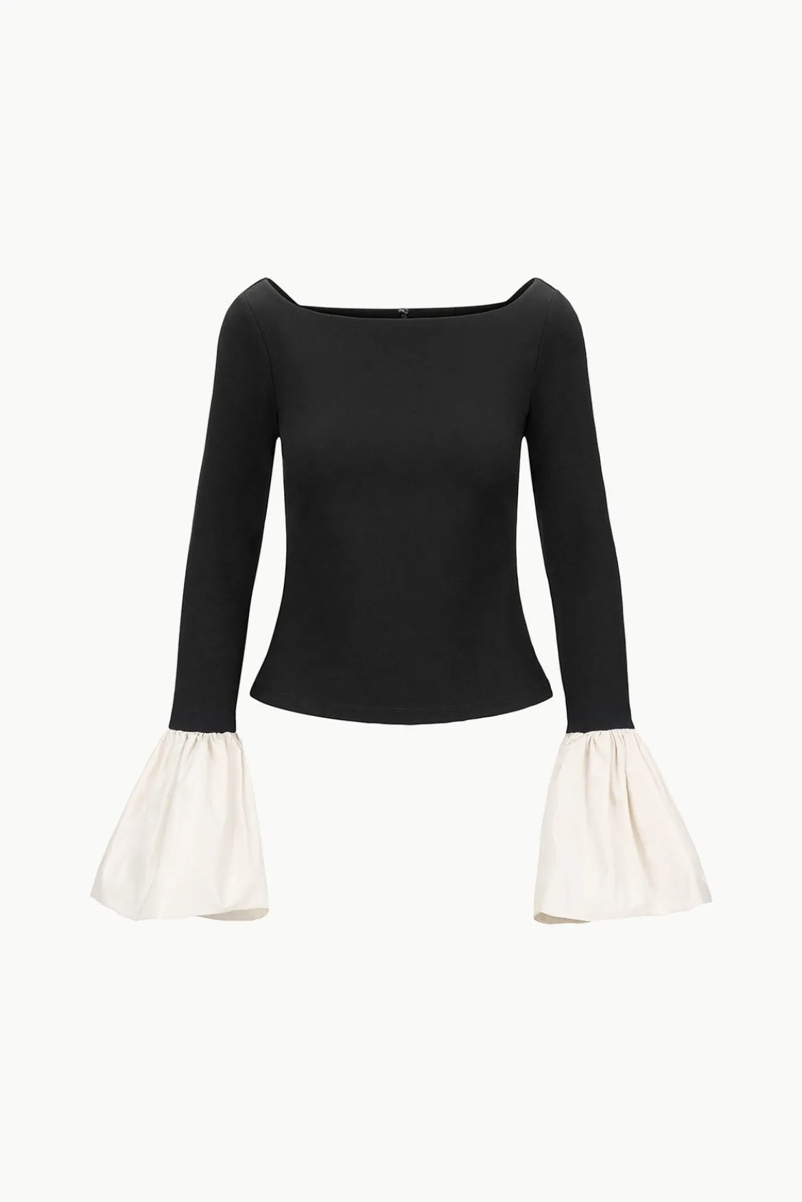 The Paige Top is a new take on our our Hawthorne Dress and is made from our comfortable ponte fabric, featuring voluminous organza cuffs for a playful occasion look.