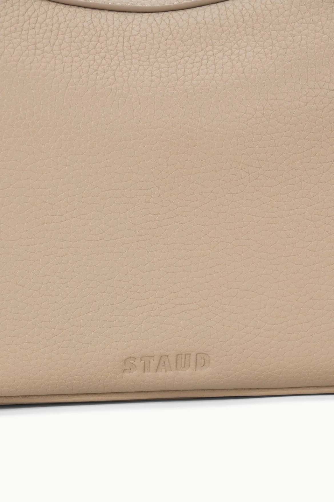 The Pine Shoulder is a pebbled leather bag with two moon shaped buckles and an adjustable shoulder strap. It features a zipper closure and an interior zipper pocket to safely store your daily essentials.