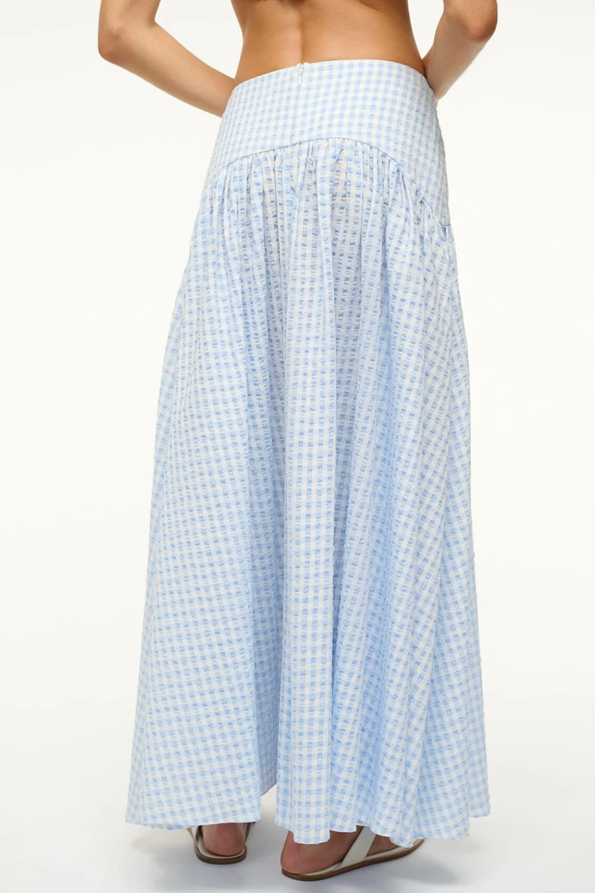 The Procida is a maxi skirt with a curved yoke at the hip and a hidden back zipper. Pair it with the Federico Top for a matching set.