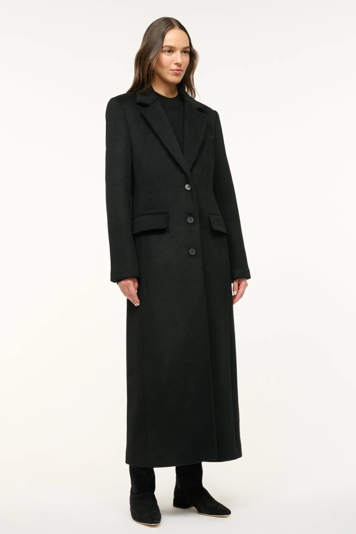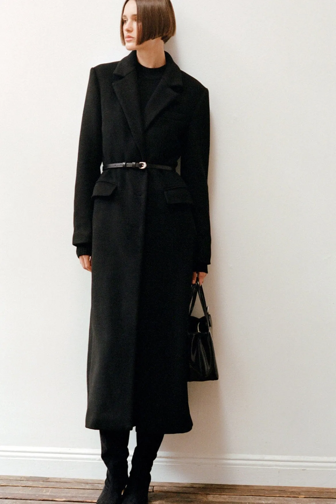 A single-breasted coat fashioned in a blazer style, the Sanza features a three button front and two flap pockets at the hips. This essential medium-weight coat is crafted from a wool blend.