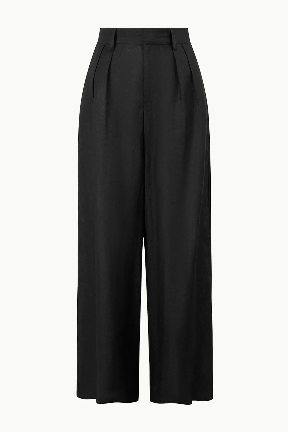 The Sasha is a wide leg pleated trouser crafted from a crisp linen featuring front slash pockets and back welt pockets.