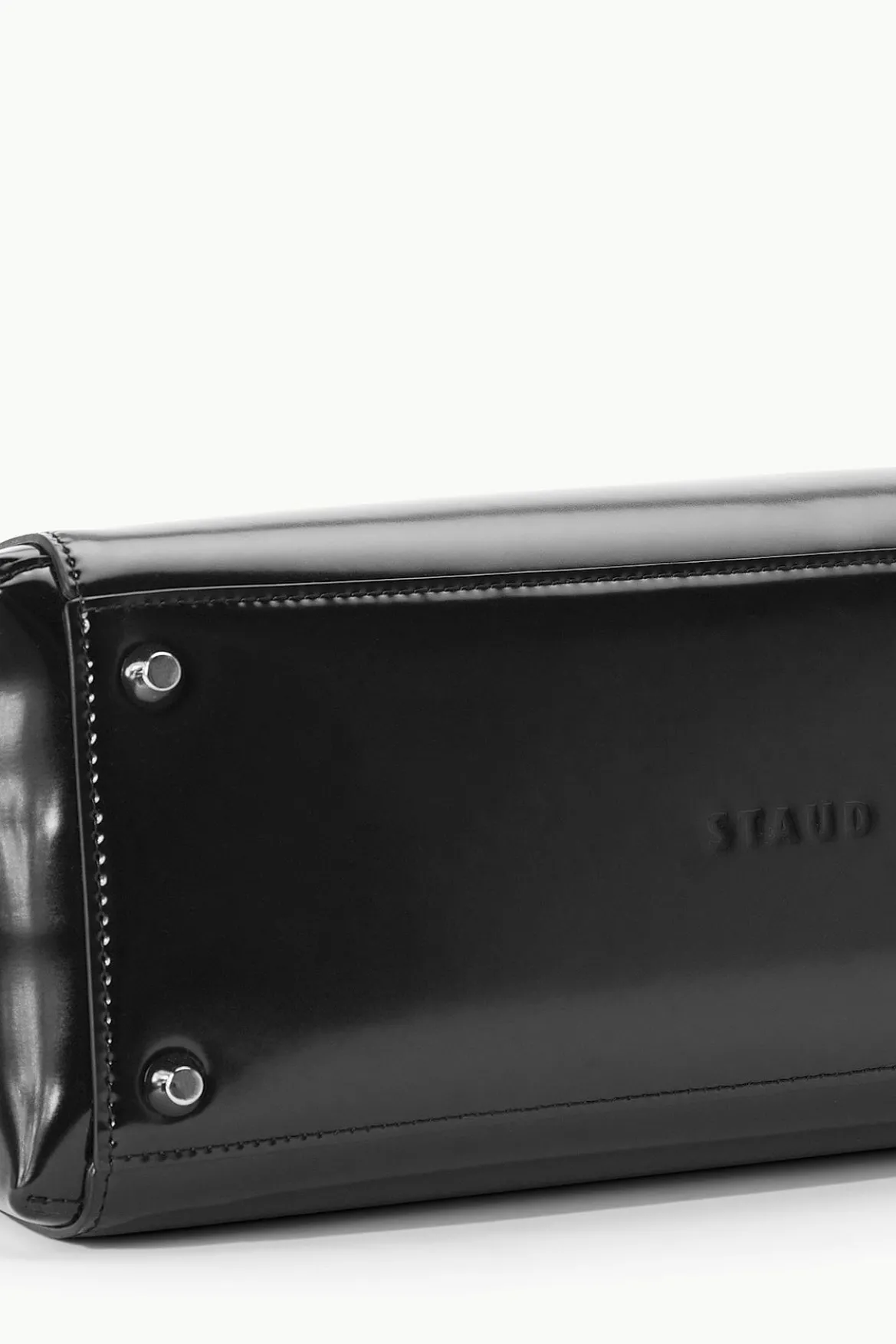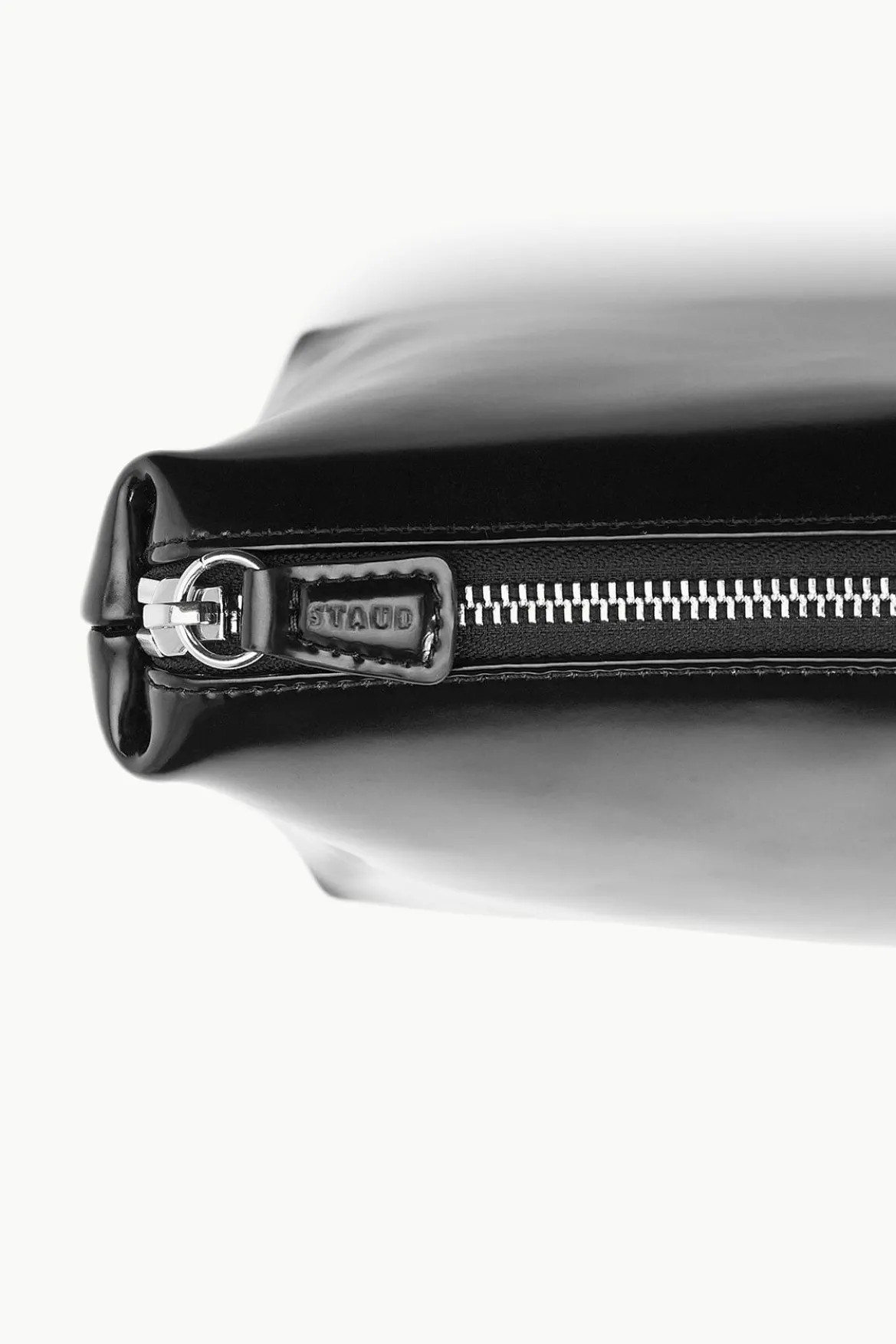 The original Shirley Bagupdated in shiny polished leather. This style includes a removable inner zip pouch and adjustable leather shoulder strap.