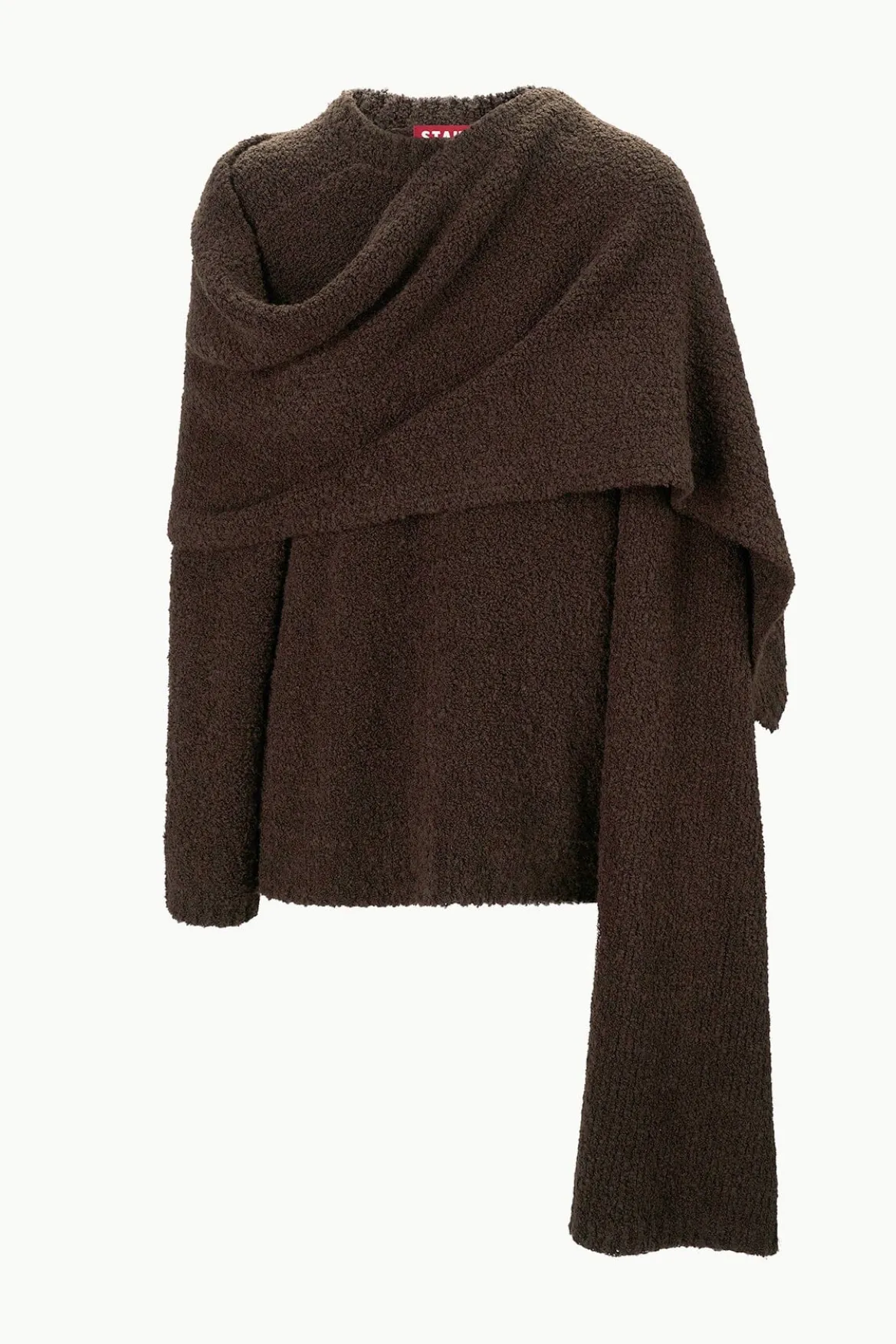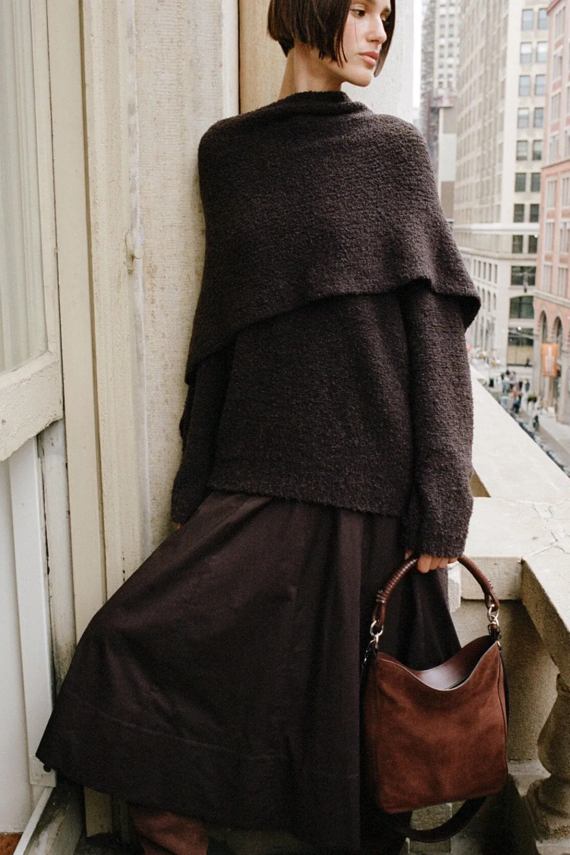 The Siren Sweater is a cozy two-in-one sweater and scarf combo. This style is an oversized crewneck boyfriend sweater with a matching, detachable, oversized scarf perfect for layering through Fall.