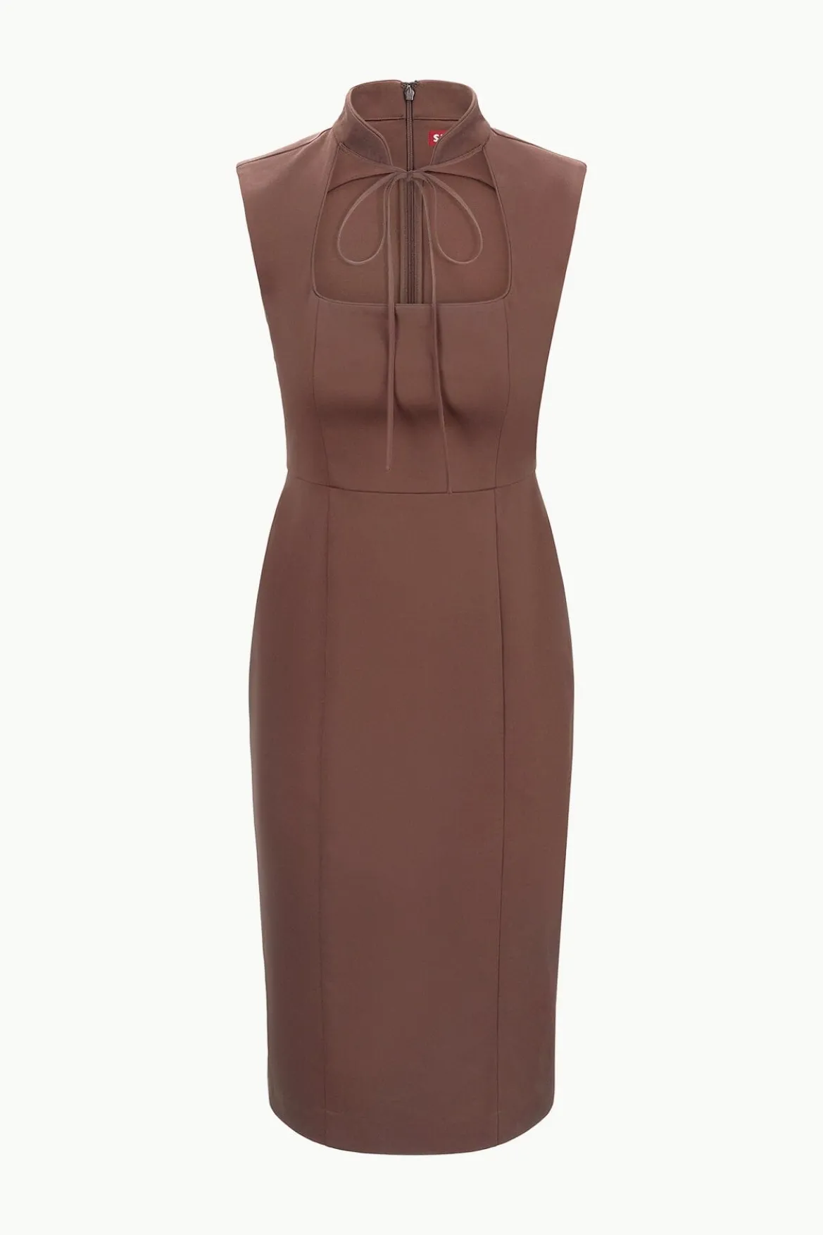 STAUD SLEEVELESS MARIANO DRESS DARK CHOCOLATE
