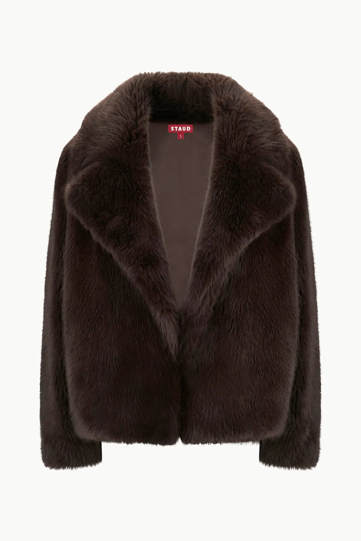 This is an oversized faux fur jacket with notched lapels and side pockets. Wear over any of our occasion dresses to complete your look.