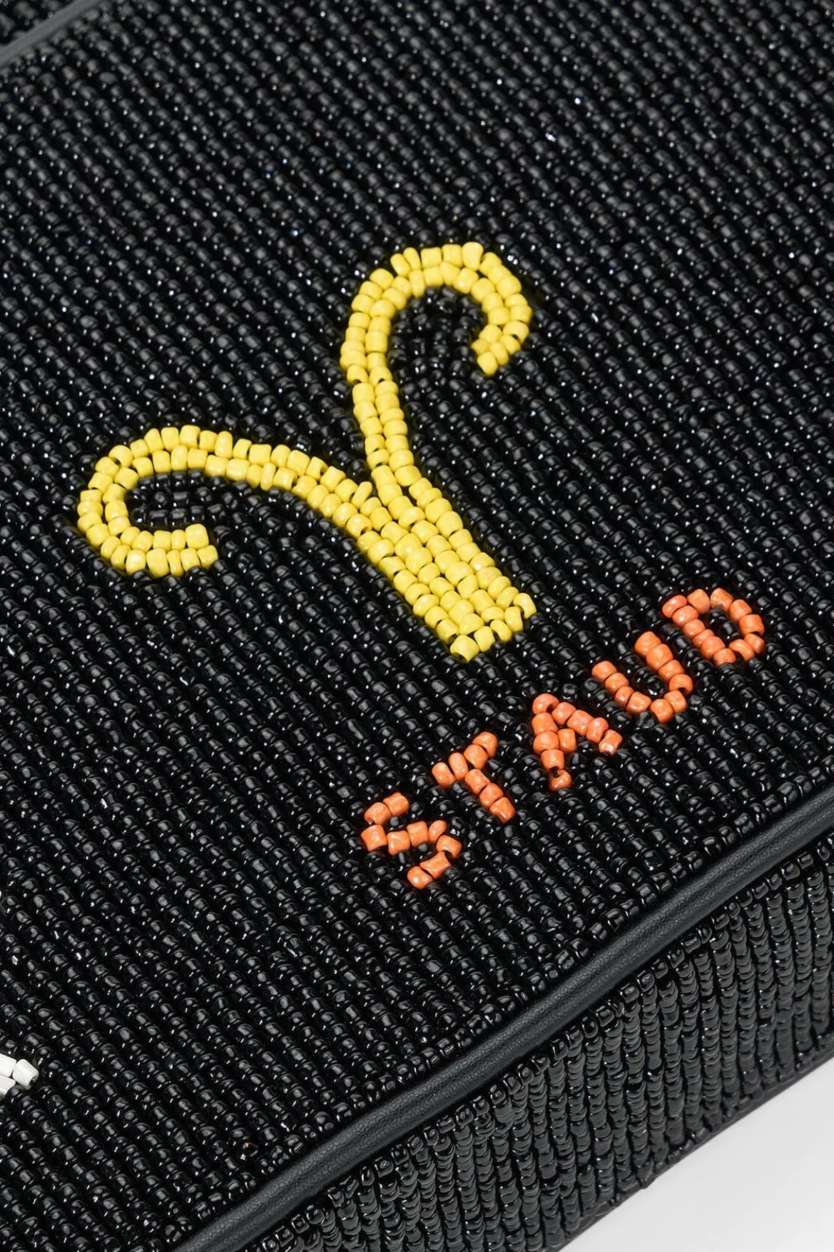 Twelve new beaded Tommy bags inspired by the star signs of the zodiac. This style is hand beaded and features vegan leather piping, a magnetic snap closureand has a pocket on the back.