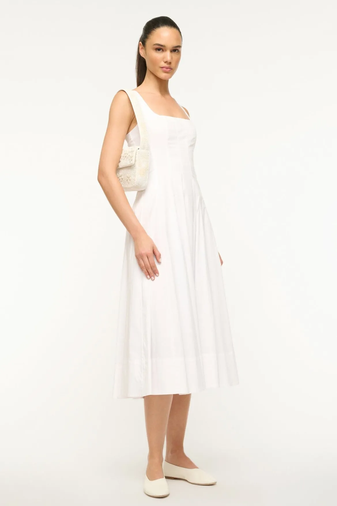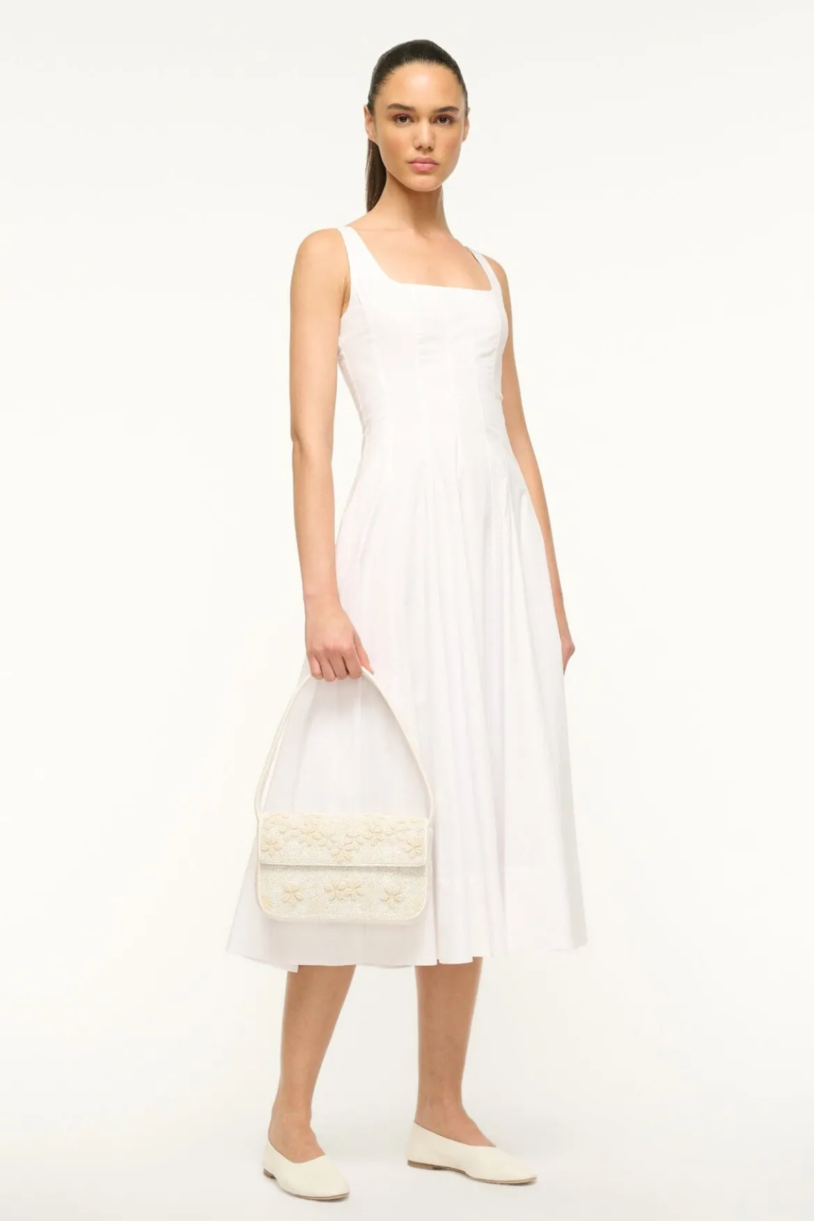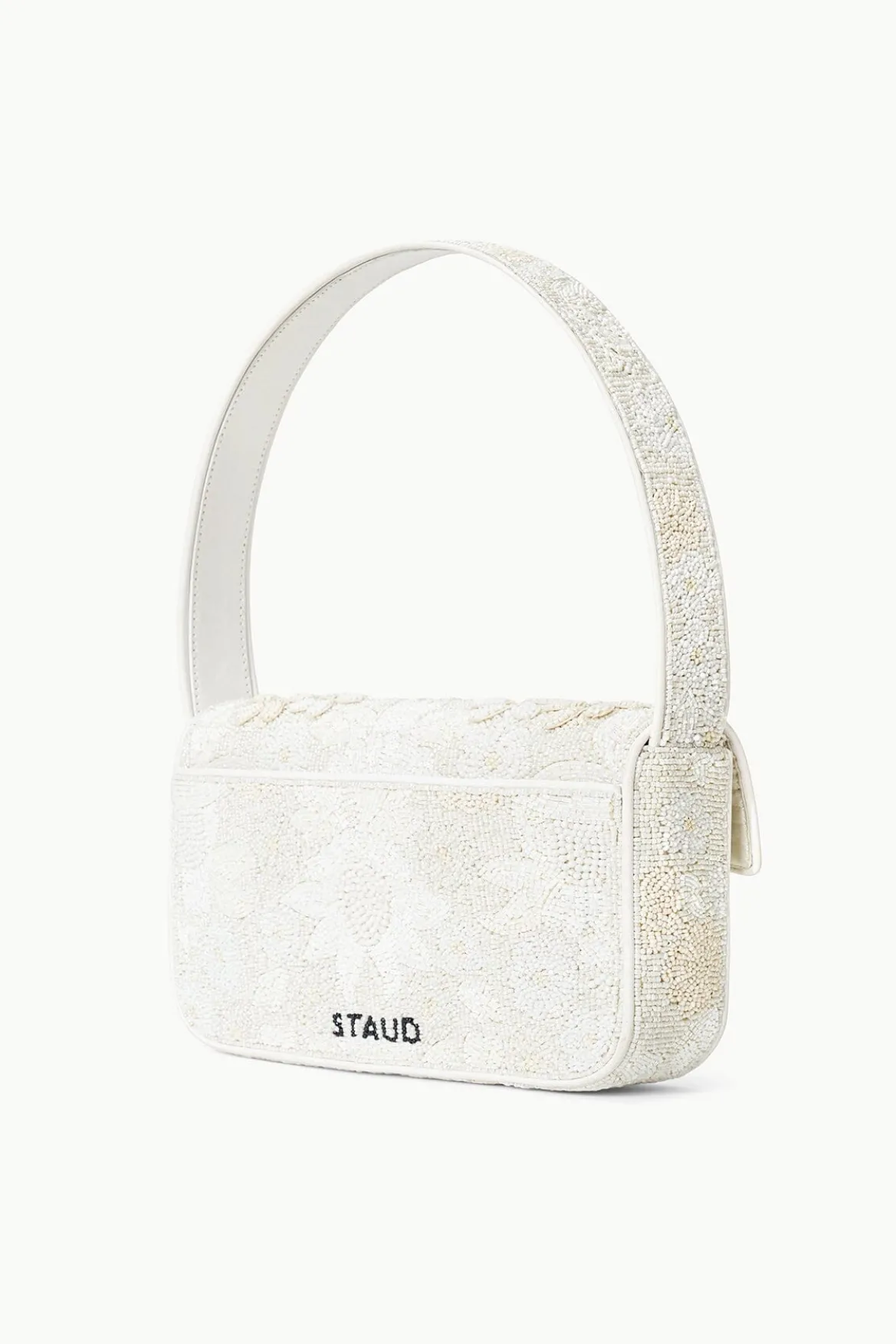 The classic hand-beaded shoulder bag with vegan leather piping. This Tommy update features embellished 3D flowers and magnetic snap closure.