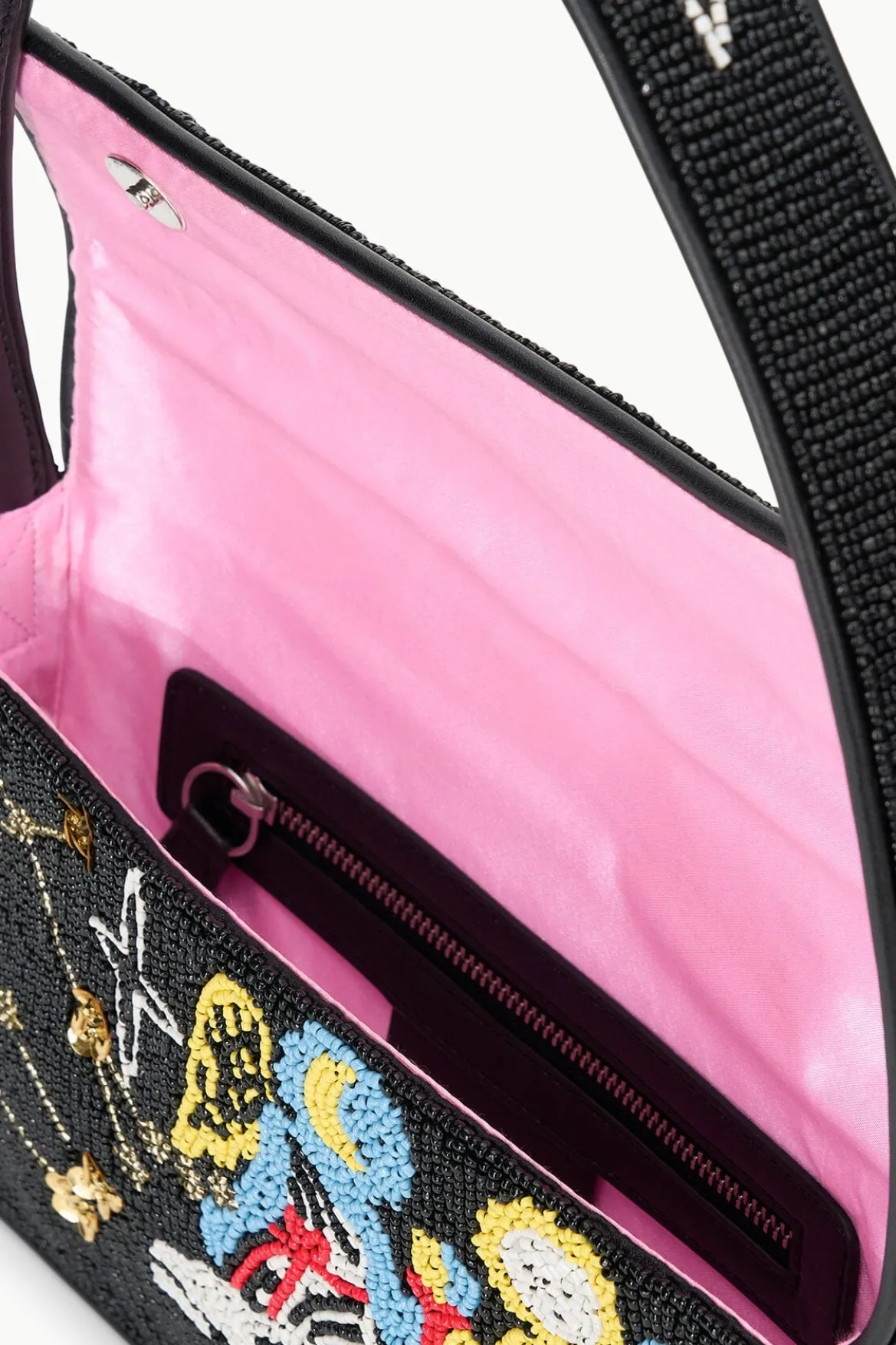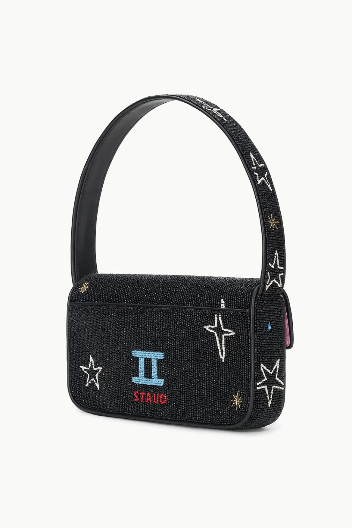 Twelve new beaded Tommy bags inspired by the star signs of the zodiac. This style is hand beaded and features vegan leather piping, a magnetic snap closureand has a pocket on the back.