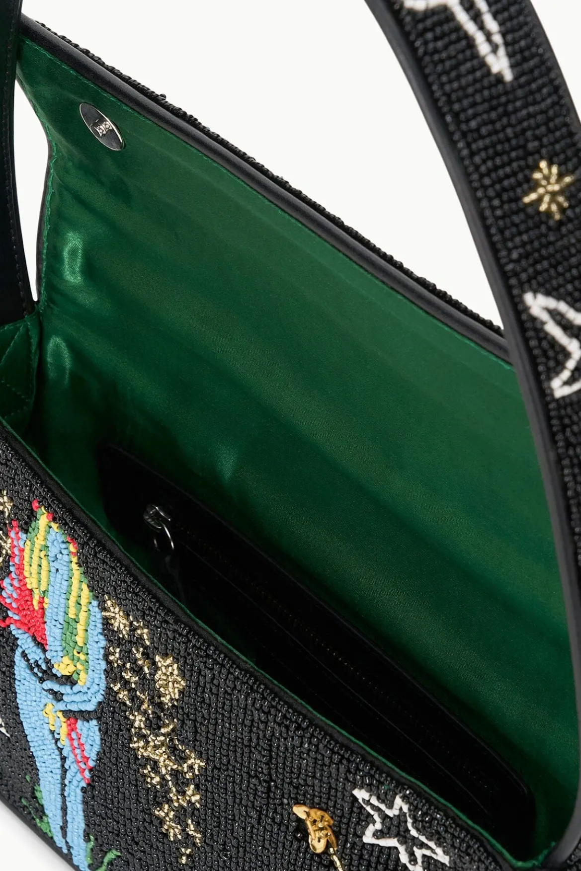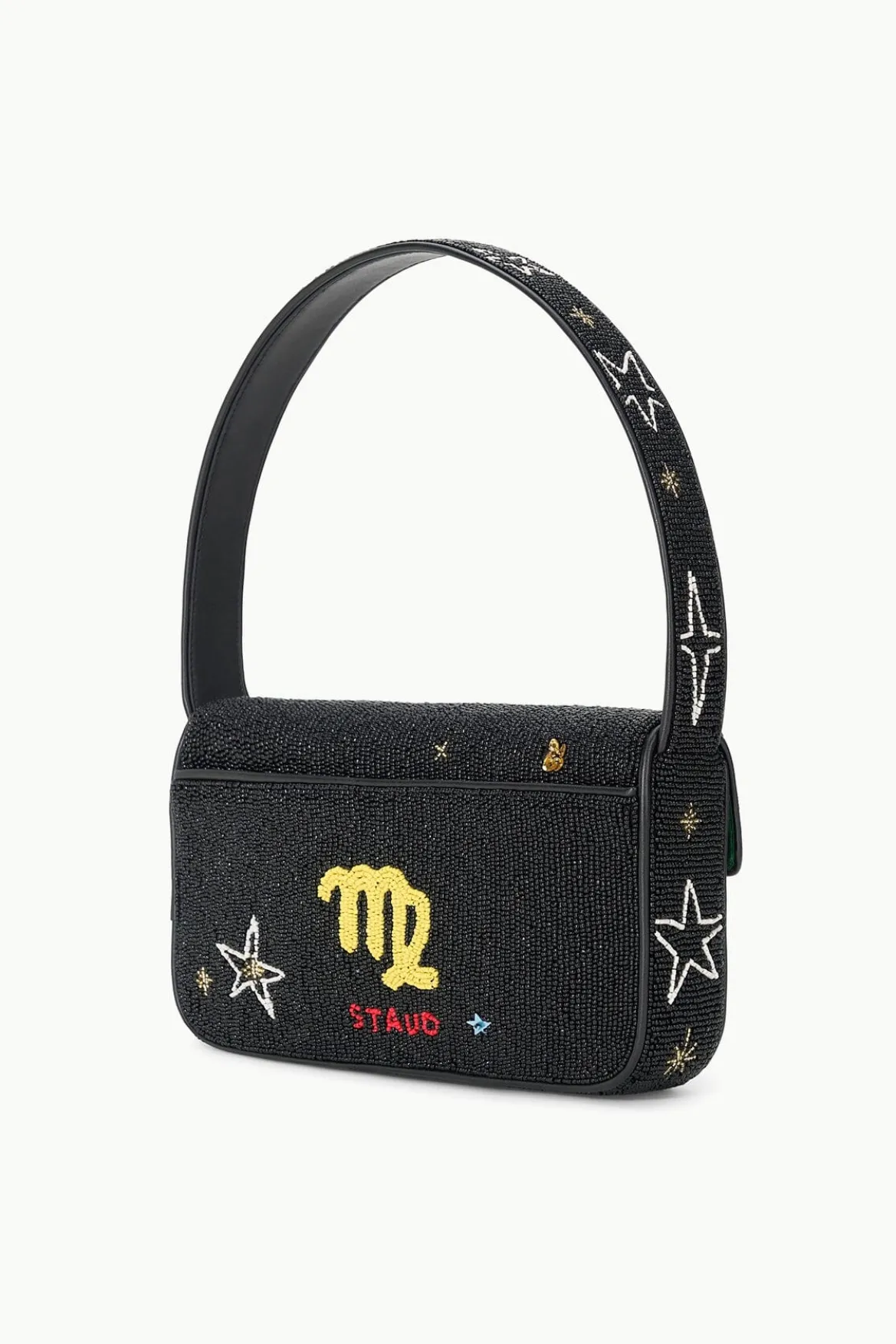 Twelve new beaded Tommy bags inspired by the star signs of the zodiac. This style is hand beaded and features vegan leather piping, a magnetic snap closureand has a pocket on the back.