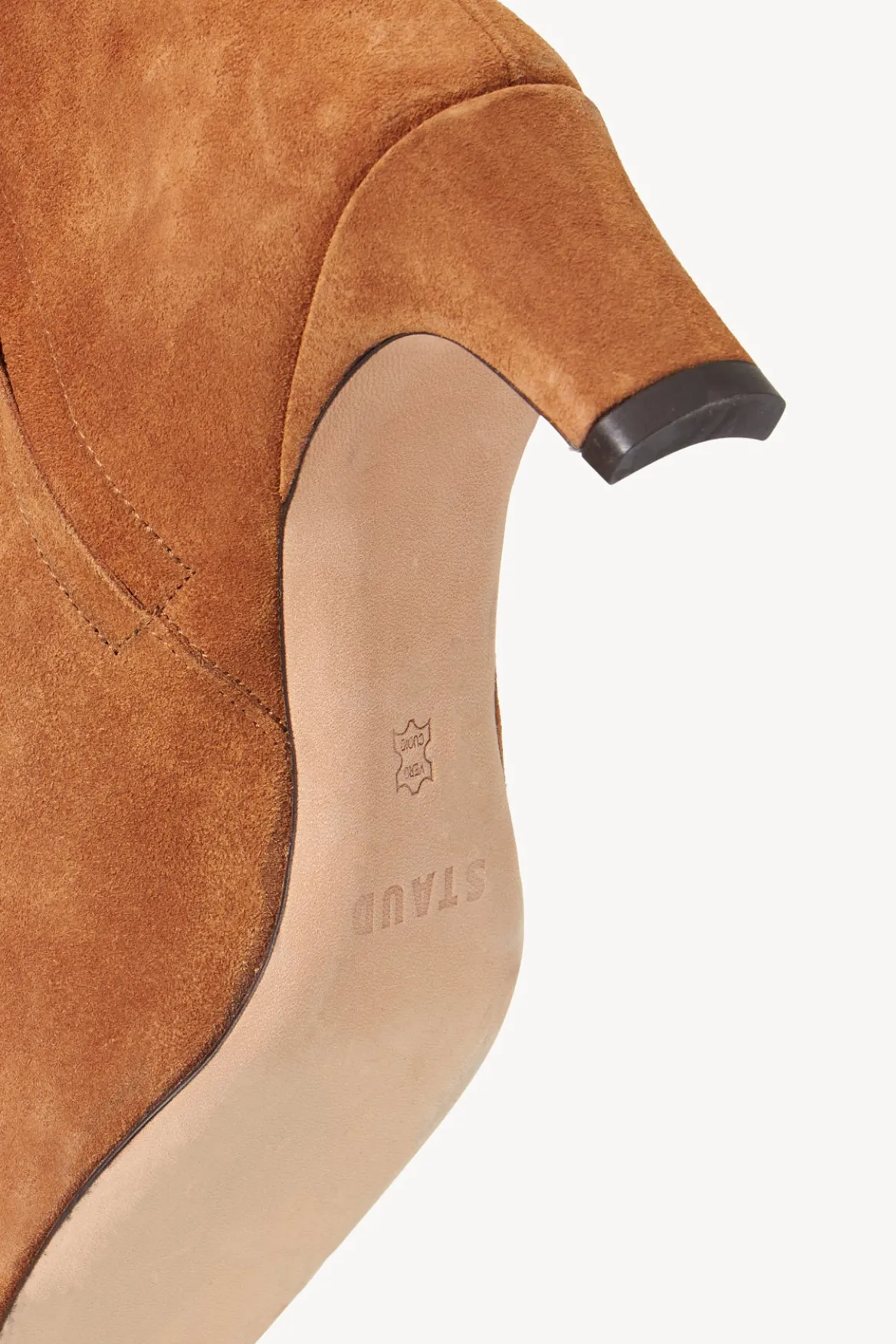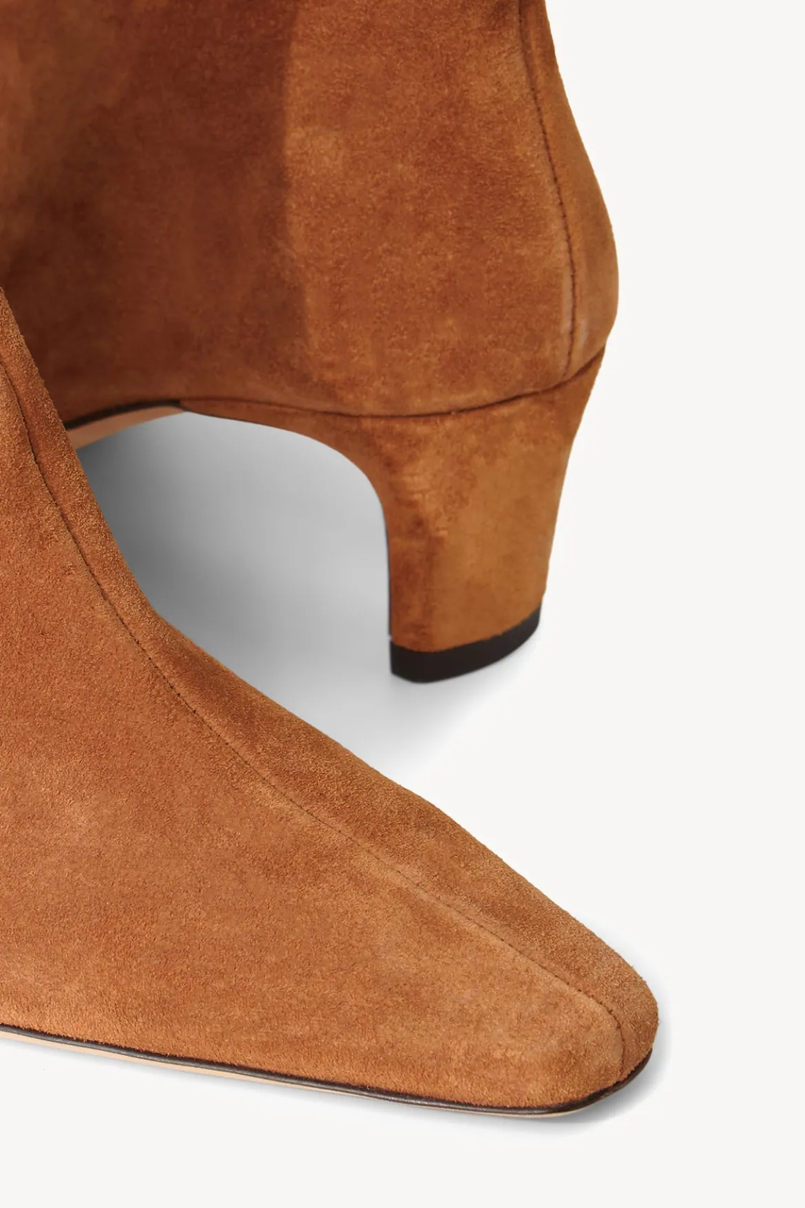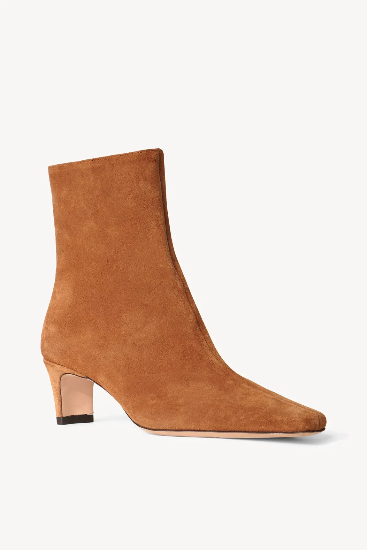A suede ankle boot, this style features a pointed rectangular toe and a blade heel. The Wally Ankle boot features a side zip closure.