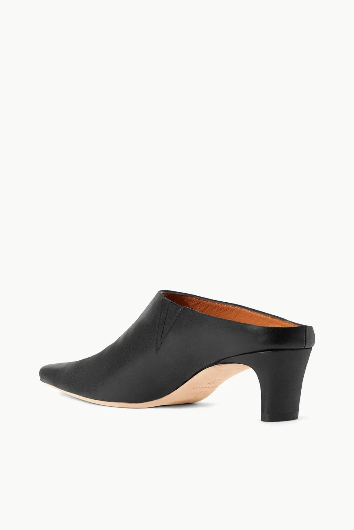 Taking inspiration from our best-selling boot, the Wally Mule features a pointed toe, open back, and kitten blade heel.