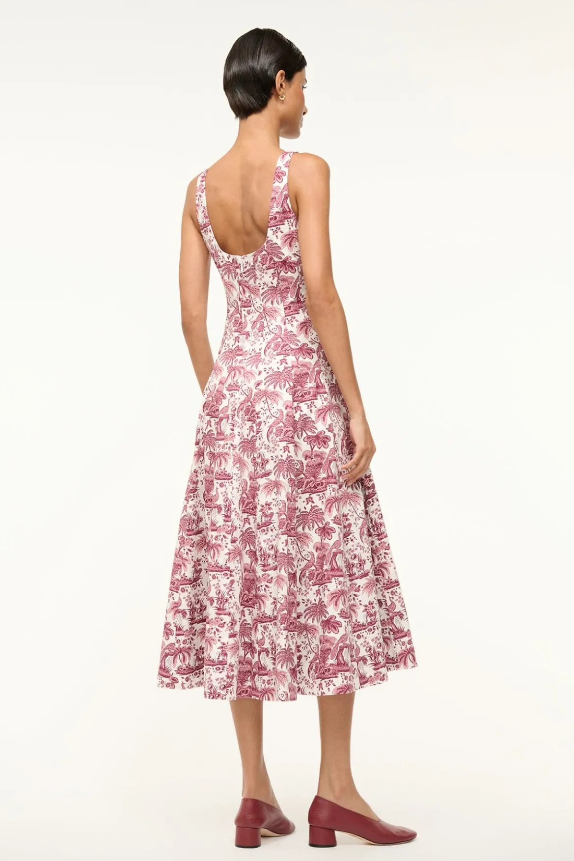The Wells Dress features a corset-style panel construction to create a flattering, fitted shape through the waist and a full skirt which hits just below the knee. Constructed in lightweight cotton poplin.