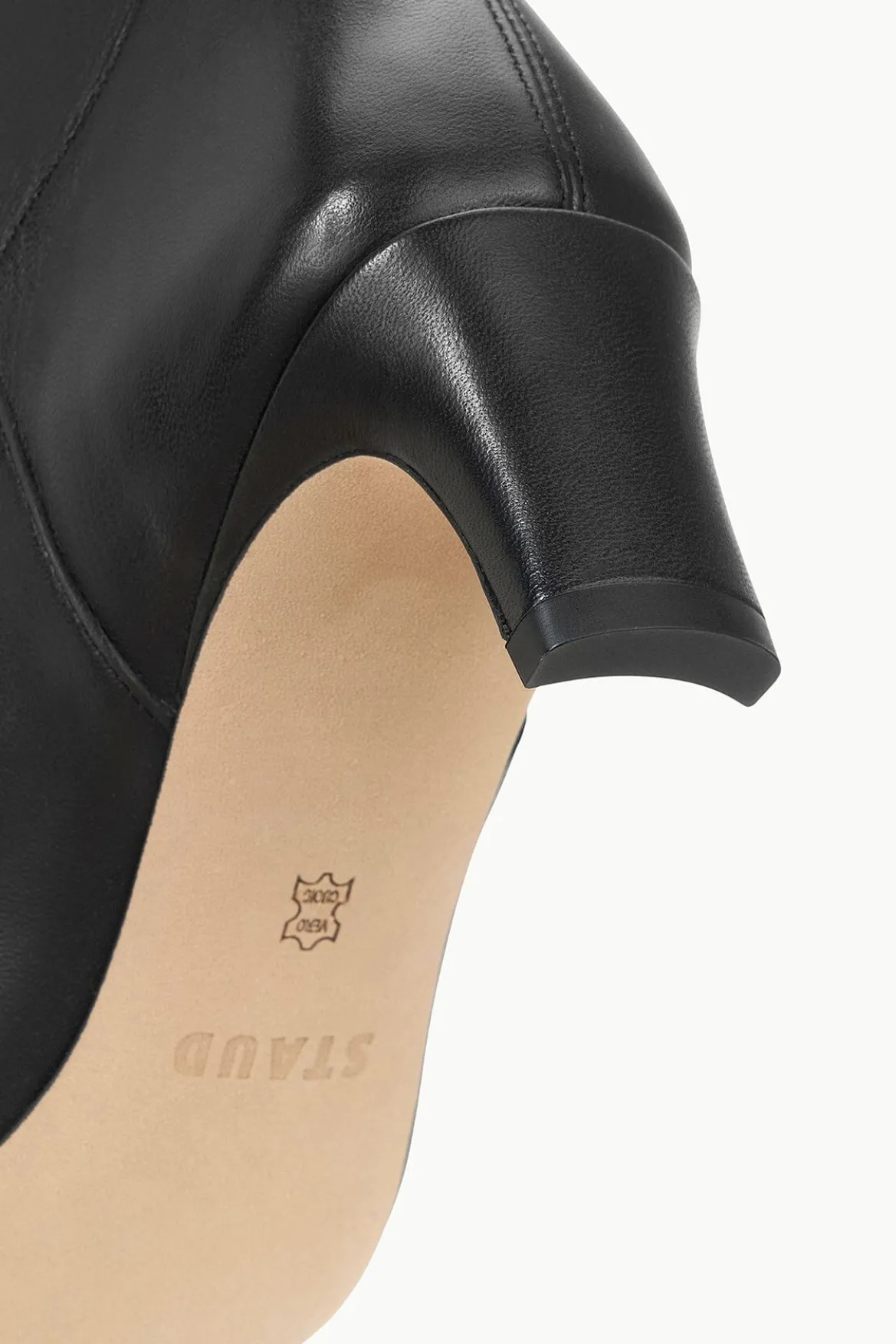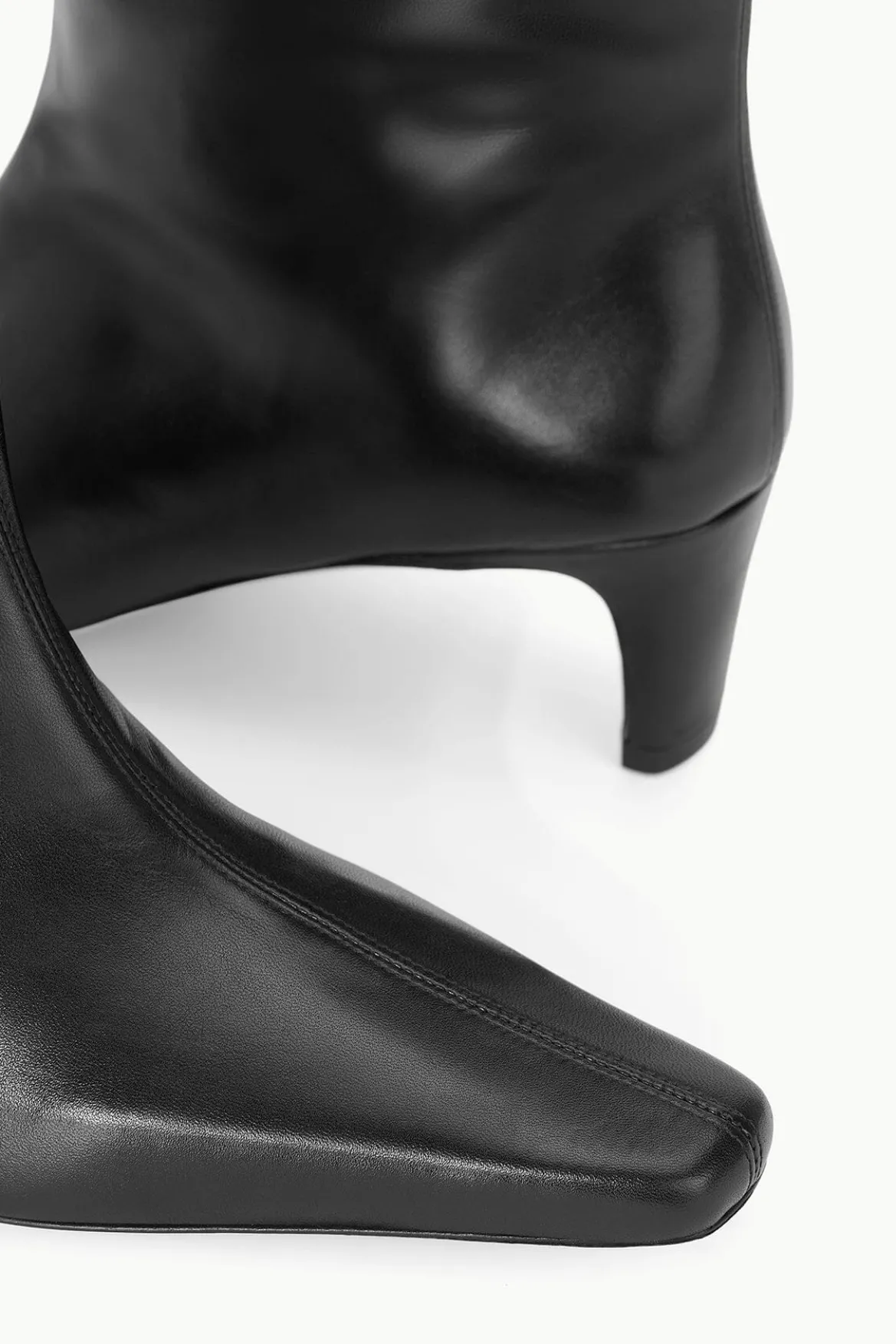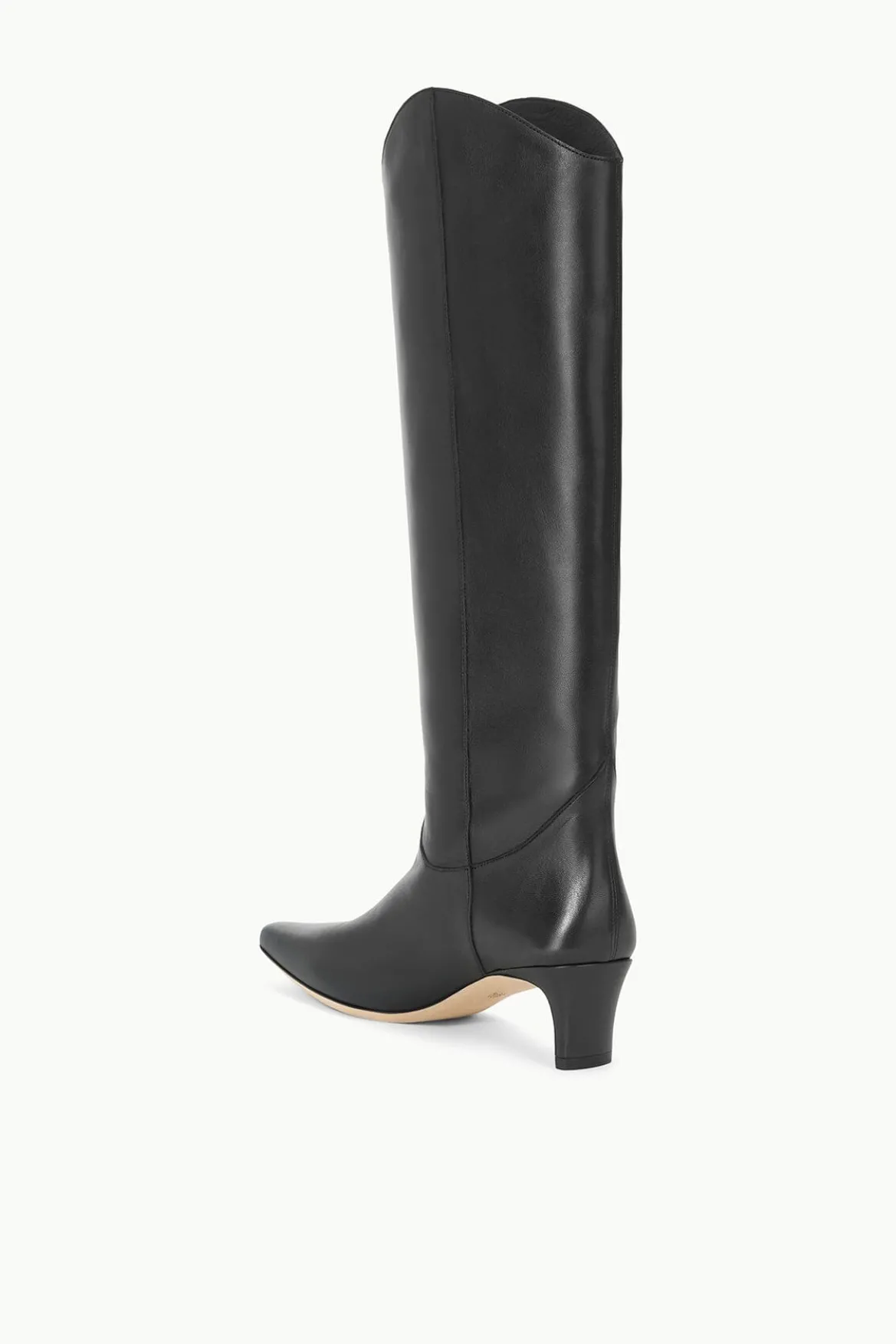 Our signatureWallyBootwith a Western inspired curved topline. This style features the classic Wally blade heel and pointed toe.