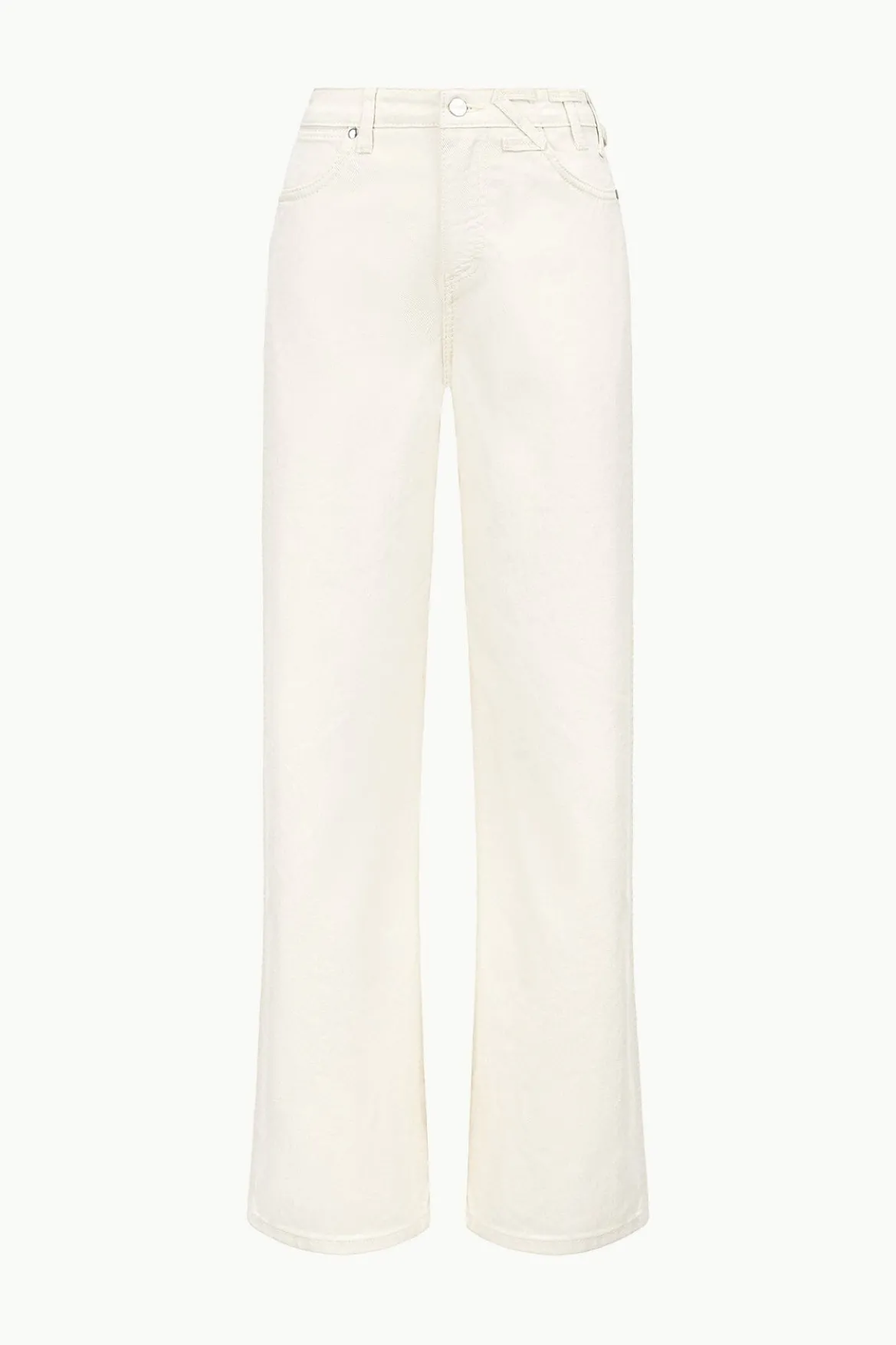 The Loose Jean is our ultra-relaxed fit. This wide leg jean sits below the natural waist for a mid-rise fit. This style features our STAUD belt loop detail at the waist. Size down to wear as a high-rise fit.