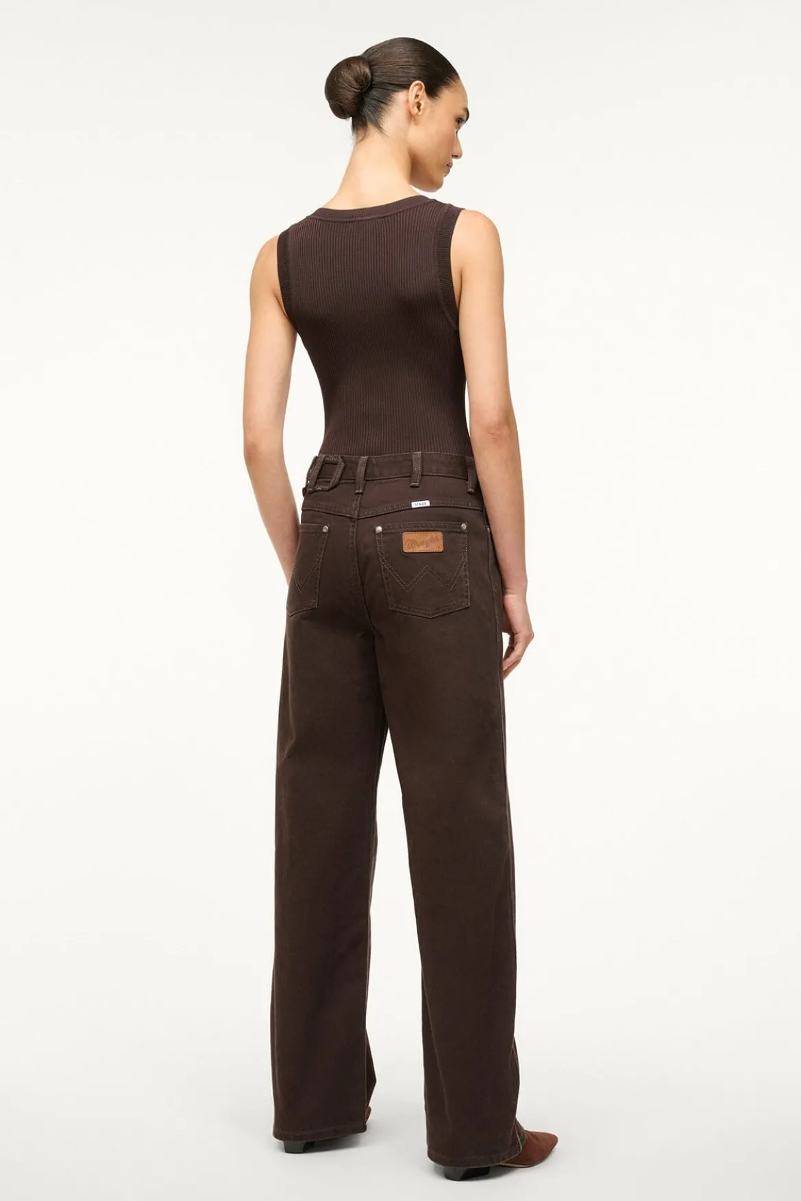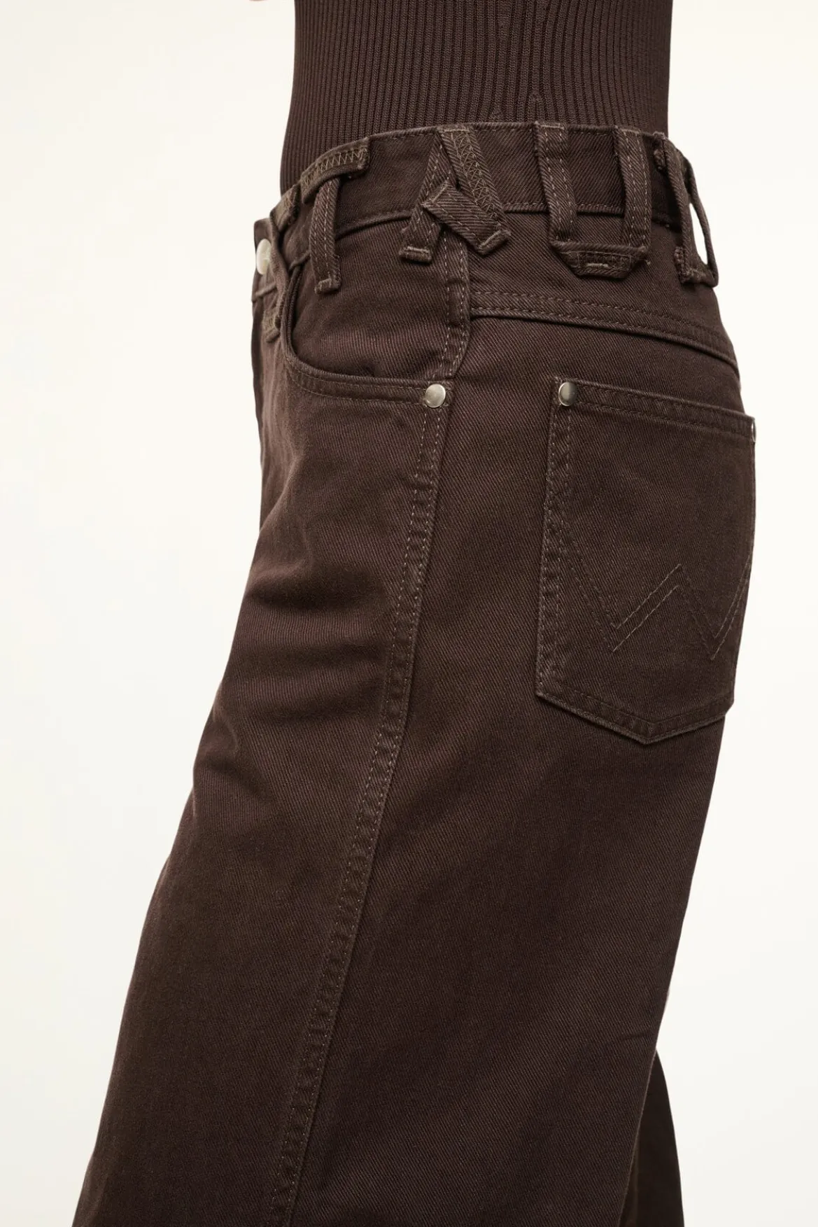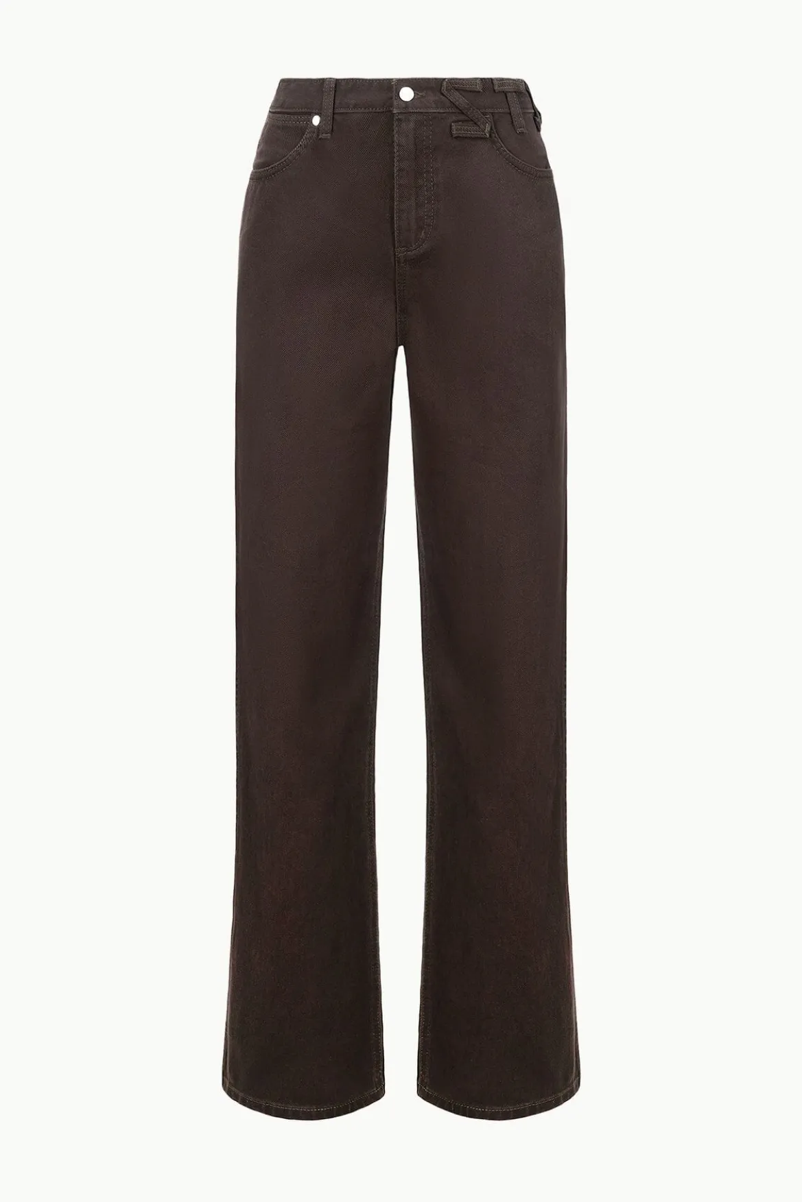 The Loose Jean is our ultra-relaxed fit. This wide leg jean sits below the natural waist for a mid-rise fit. This style features our STAUD belt loop detail at the waist. Size down to wear as a high-rise fit.