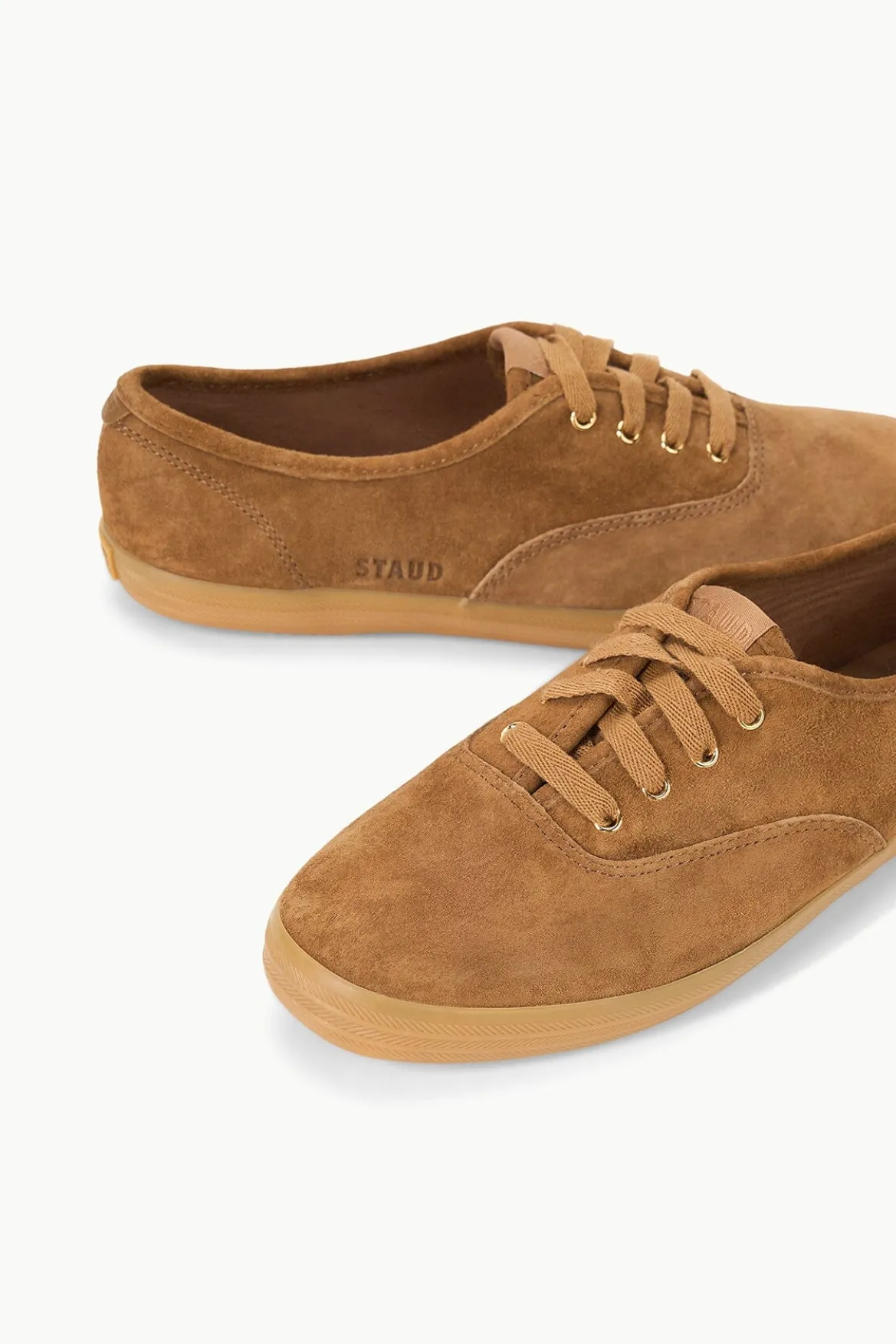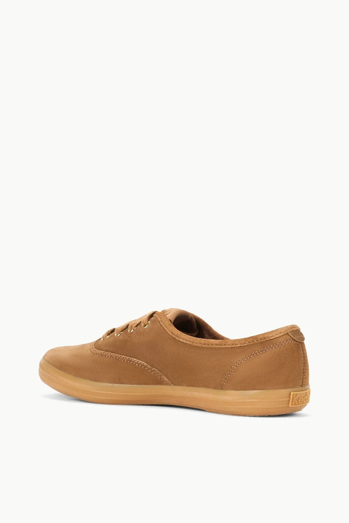 Introducing the STAUD + Keds Champion Sneaker, a timeless and instantly recognizable design, elevated with a tan suede upper. The Champion Sneaker is a lace-up suede shoe, featuring a rubber sole and STAUD tonal embroidery.