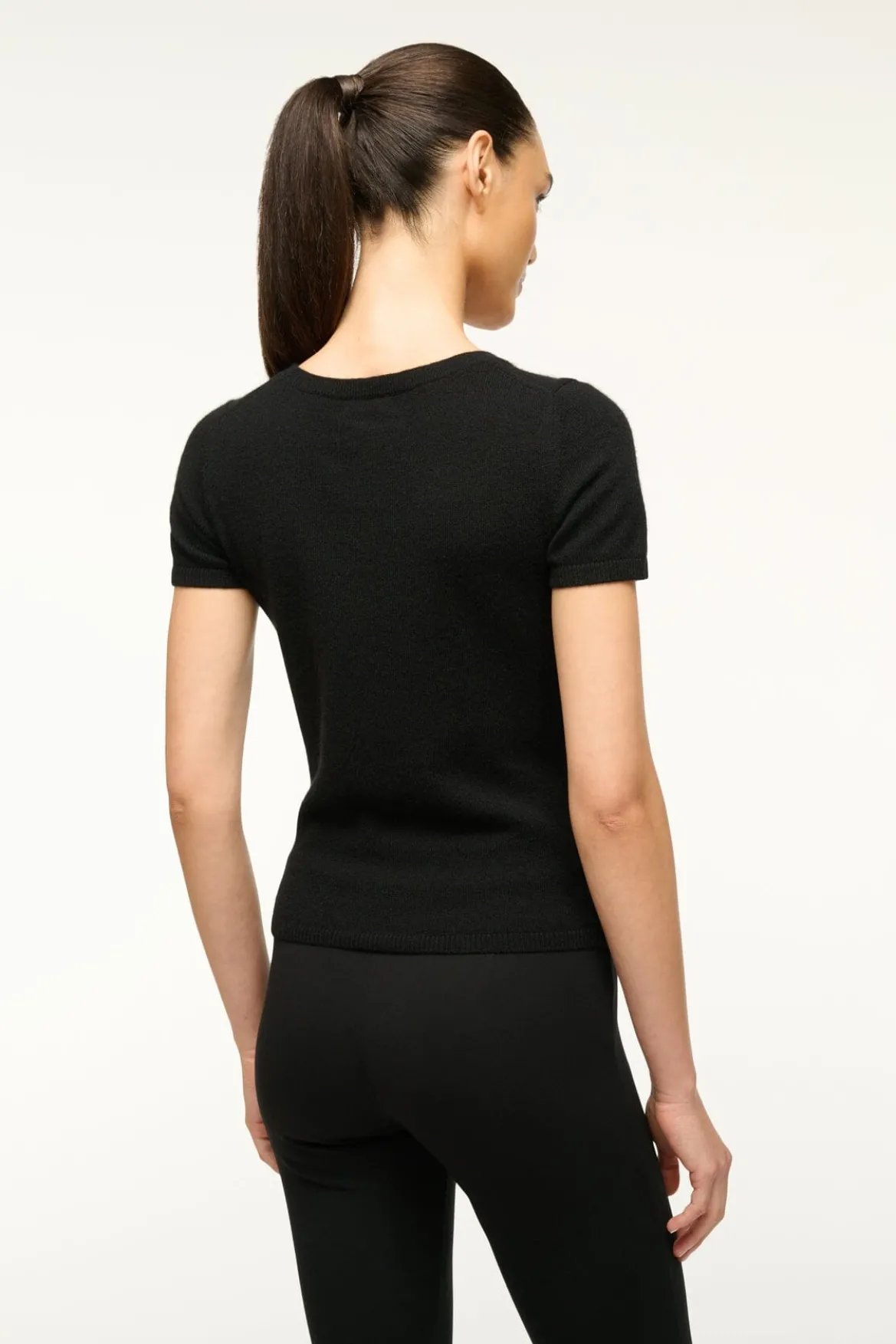 The Easy Cashmere Tee is a cashmere top with a crew neckline and short sleeves.