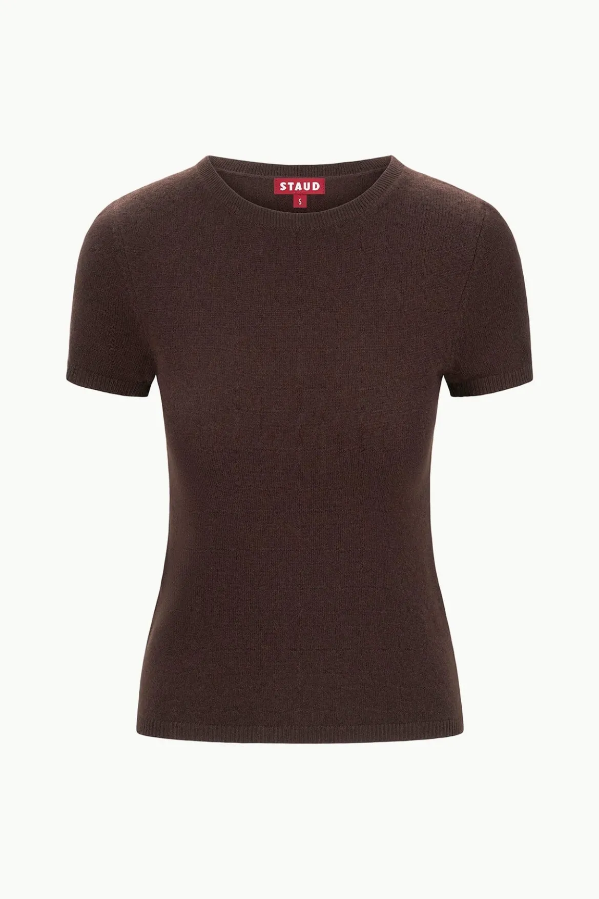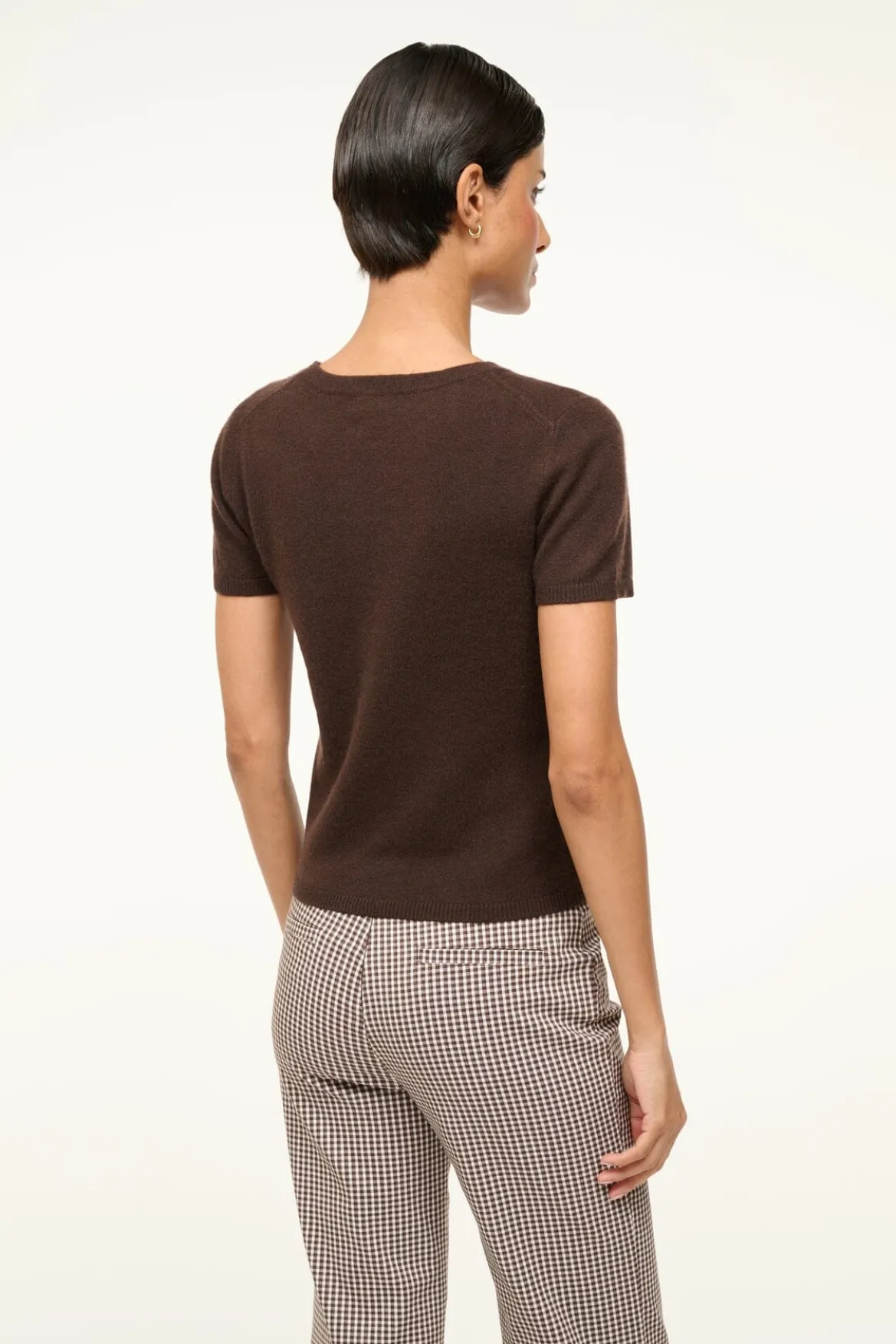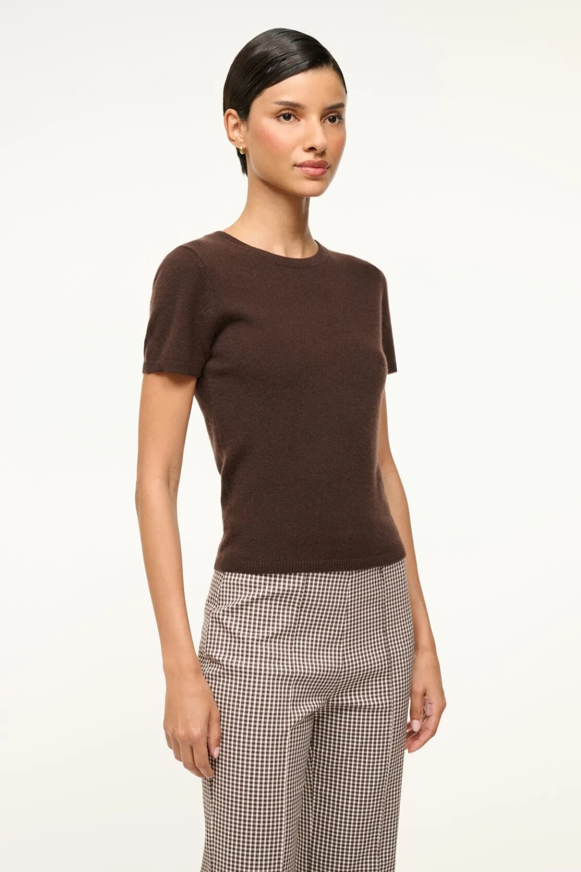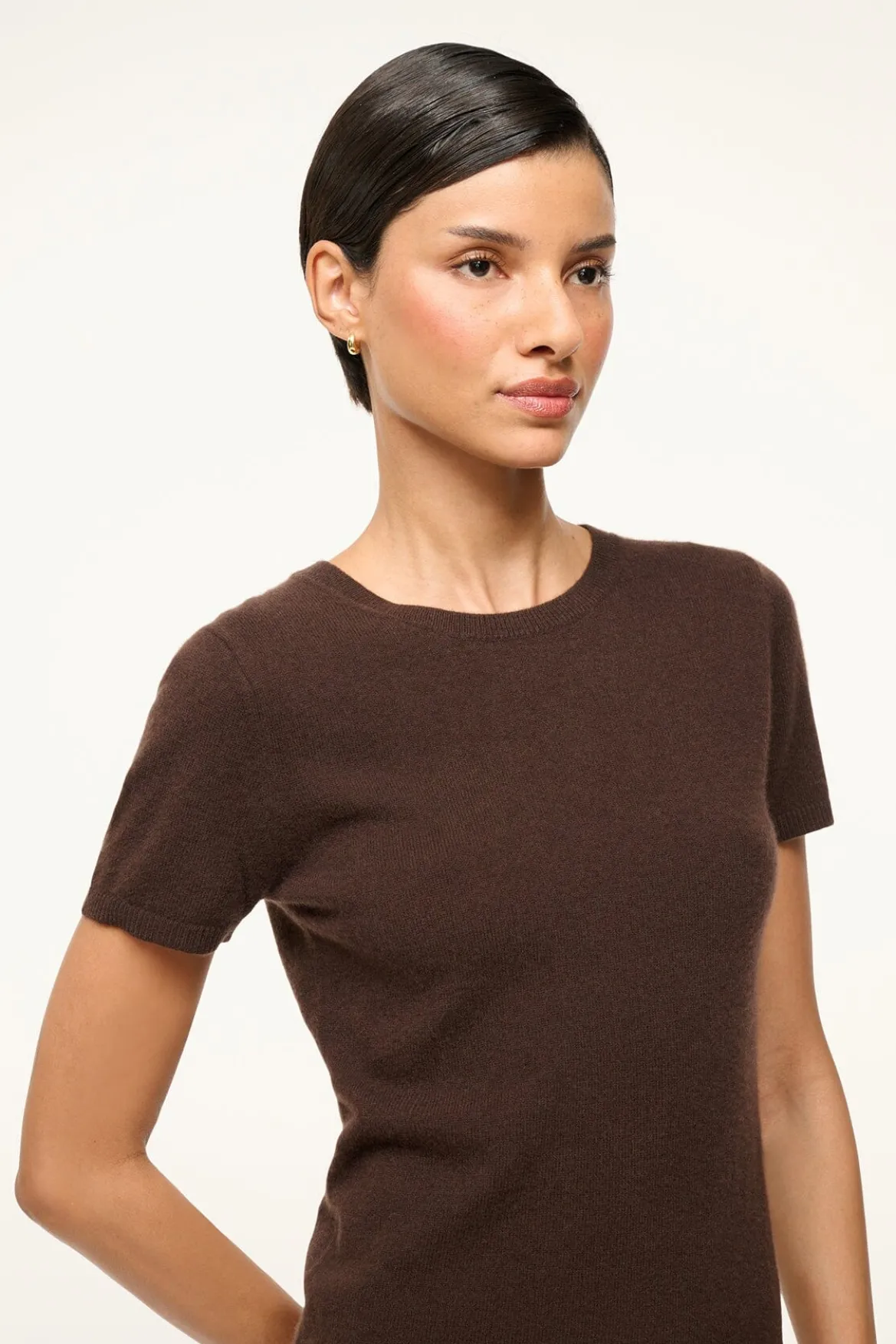The Easy Cashmere Tee is a cashmere top with a crew neckline and short sleeves.