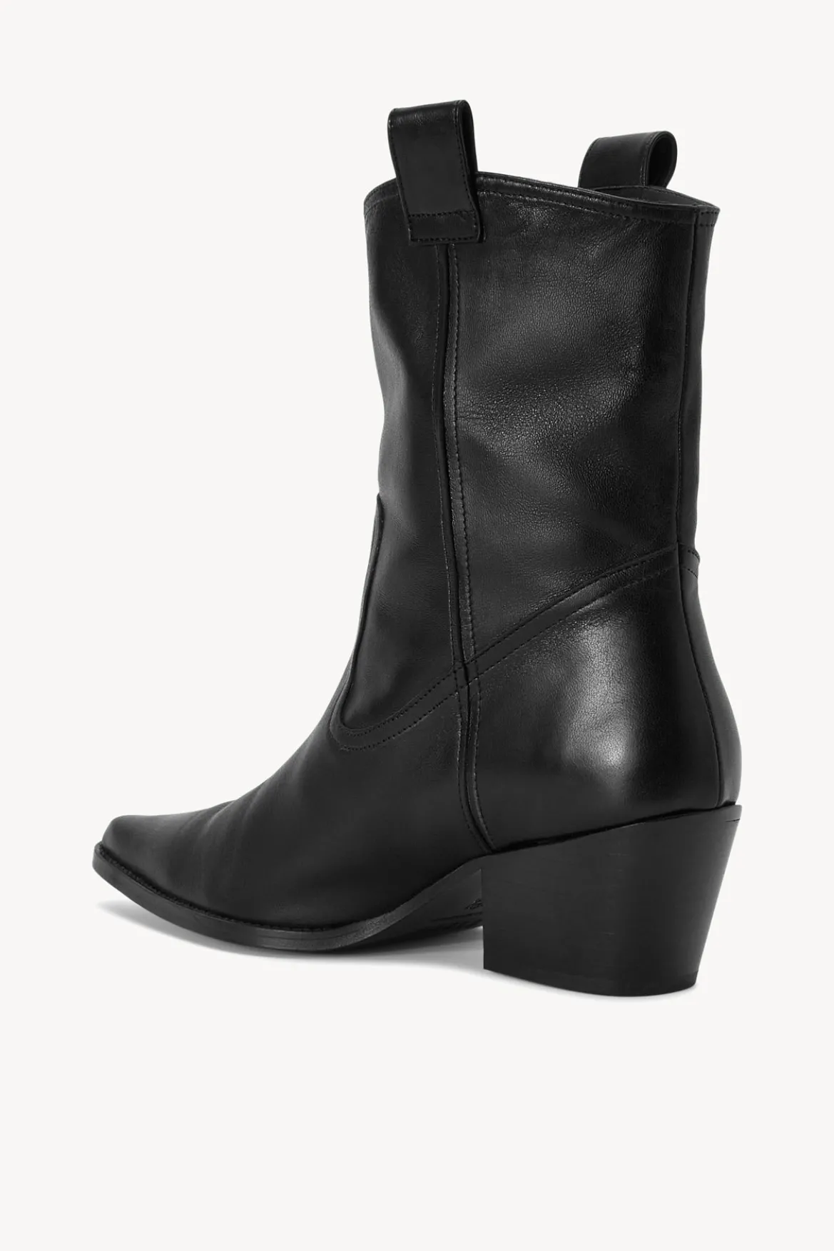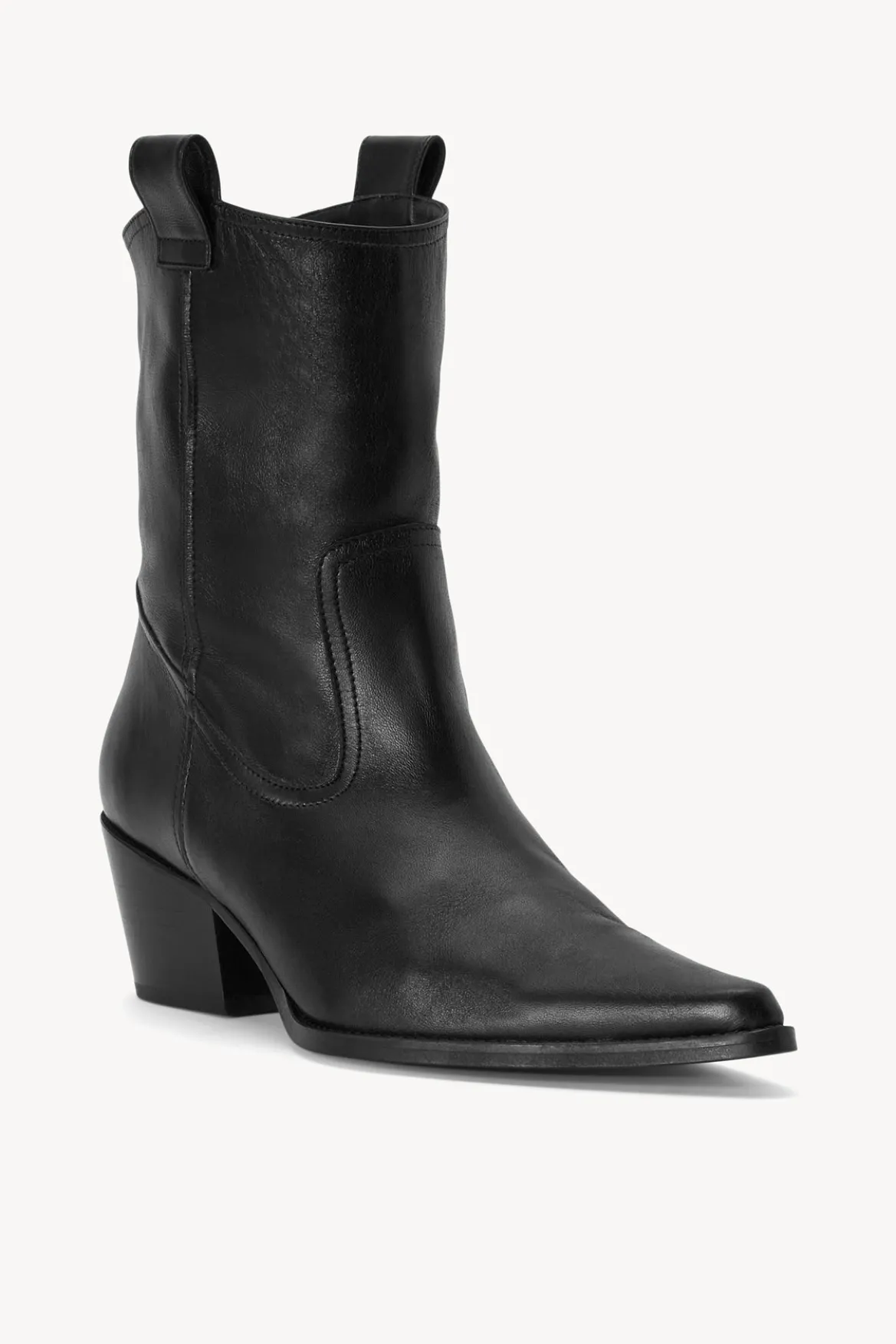 New for the season, the June is a true pointed toe cowboy boot made from soft leather. This style features western seaming and cuban heel.