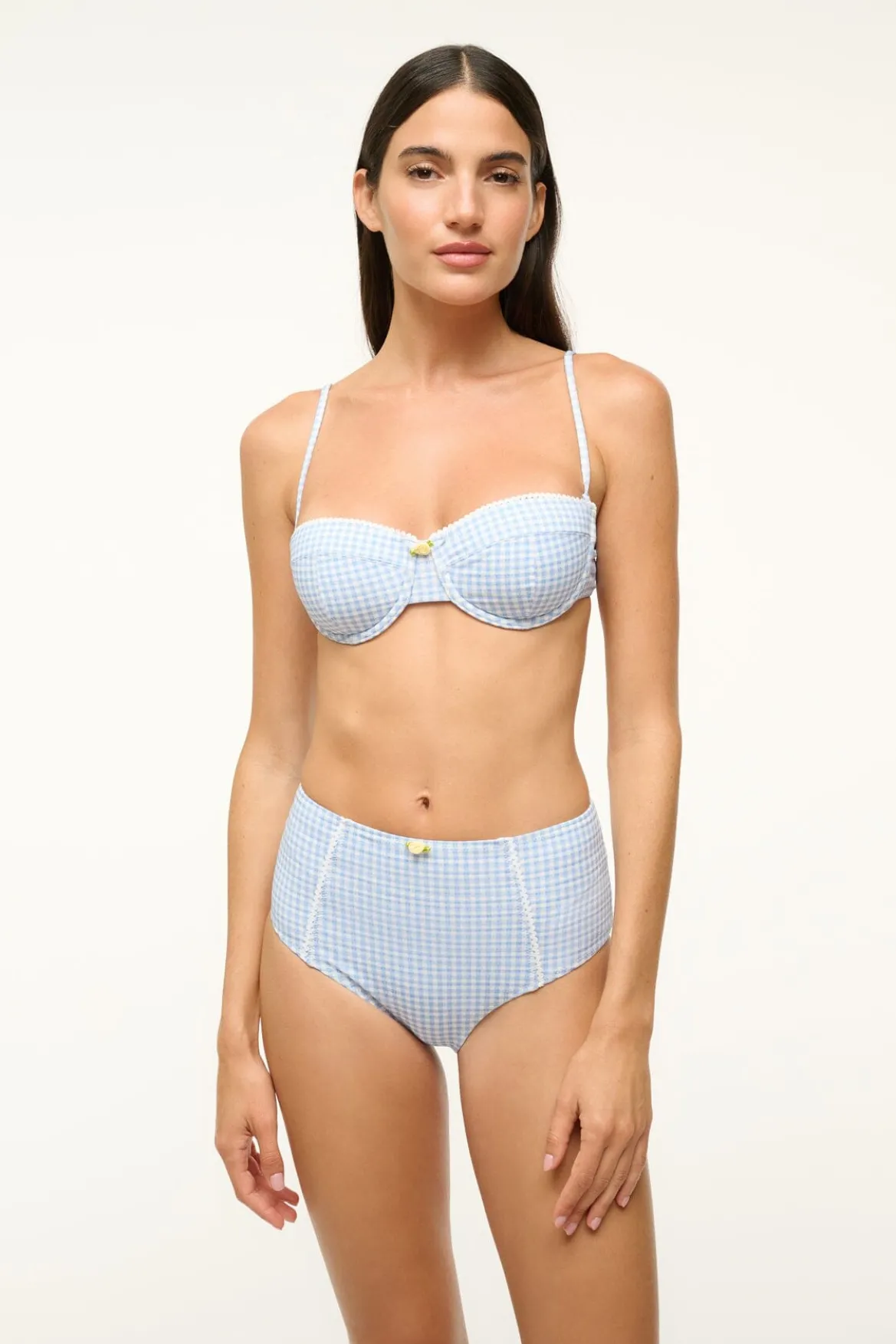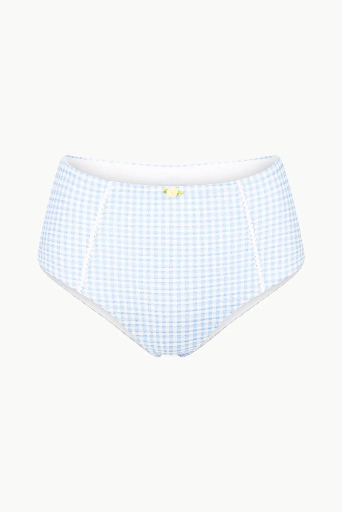 The Wailea Bikini Bottom is a new high-waisted swim bottom, featuring a dainty bow detail at the front, along with contrast piping.